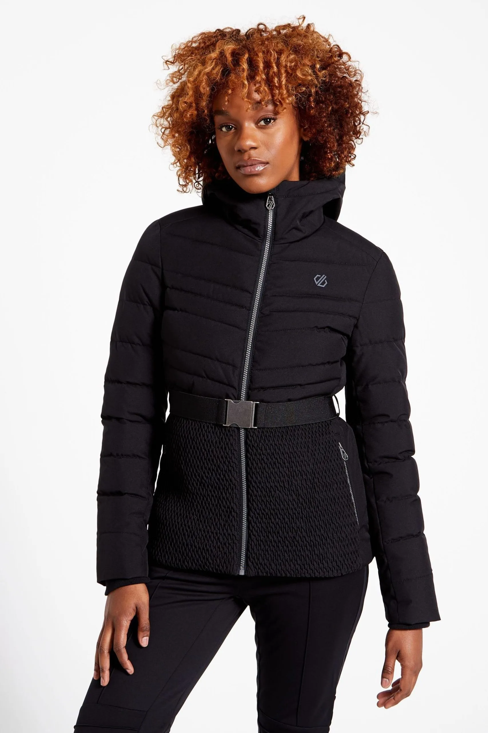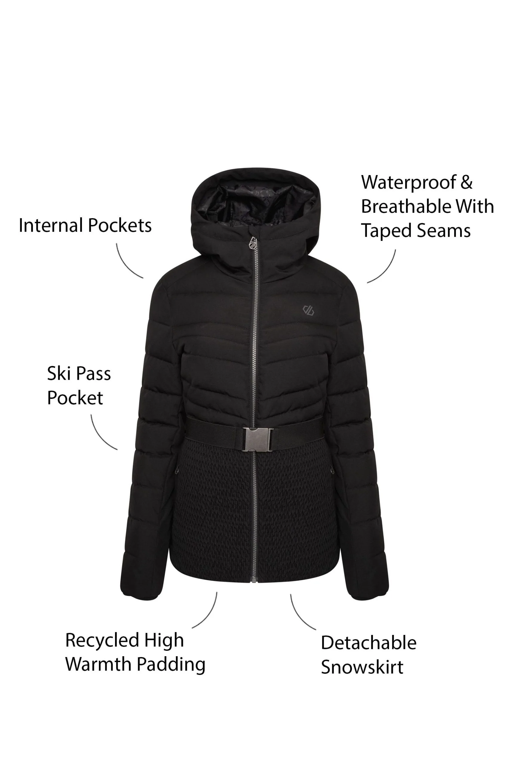 The women’s Hit the Slopes premium ski jacket. Made from our most waterproof and breathable fabric yet – Ared 20/30. The recycled waterproof fabric means you’ll be shielded away from the most severe conditions. A range of features such as a detachable snow skirt, centre front zip with inner zip and chin guard for extra weather protection, and high warmth padding means frigid temperatures won’t stop you from getting your turns in.