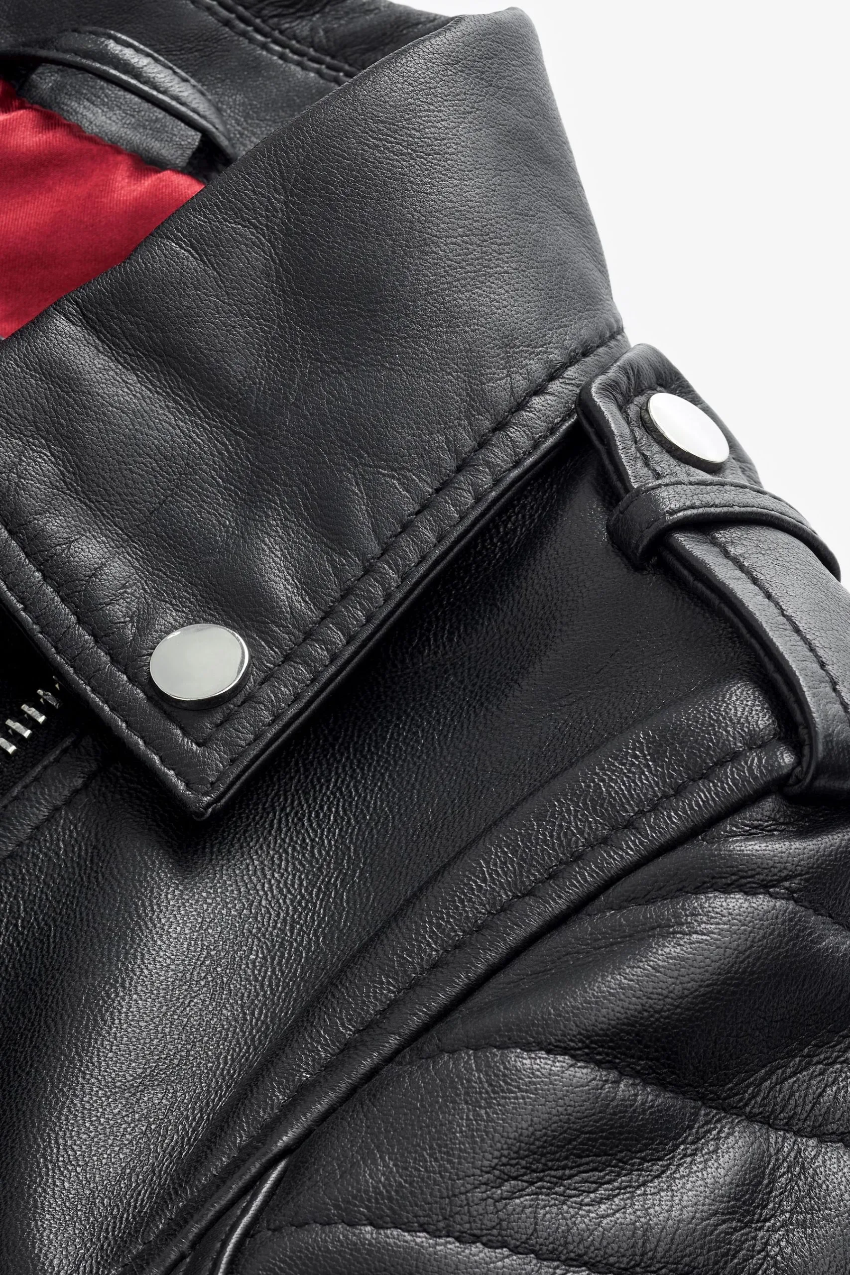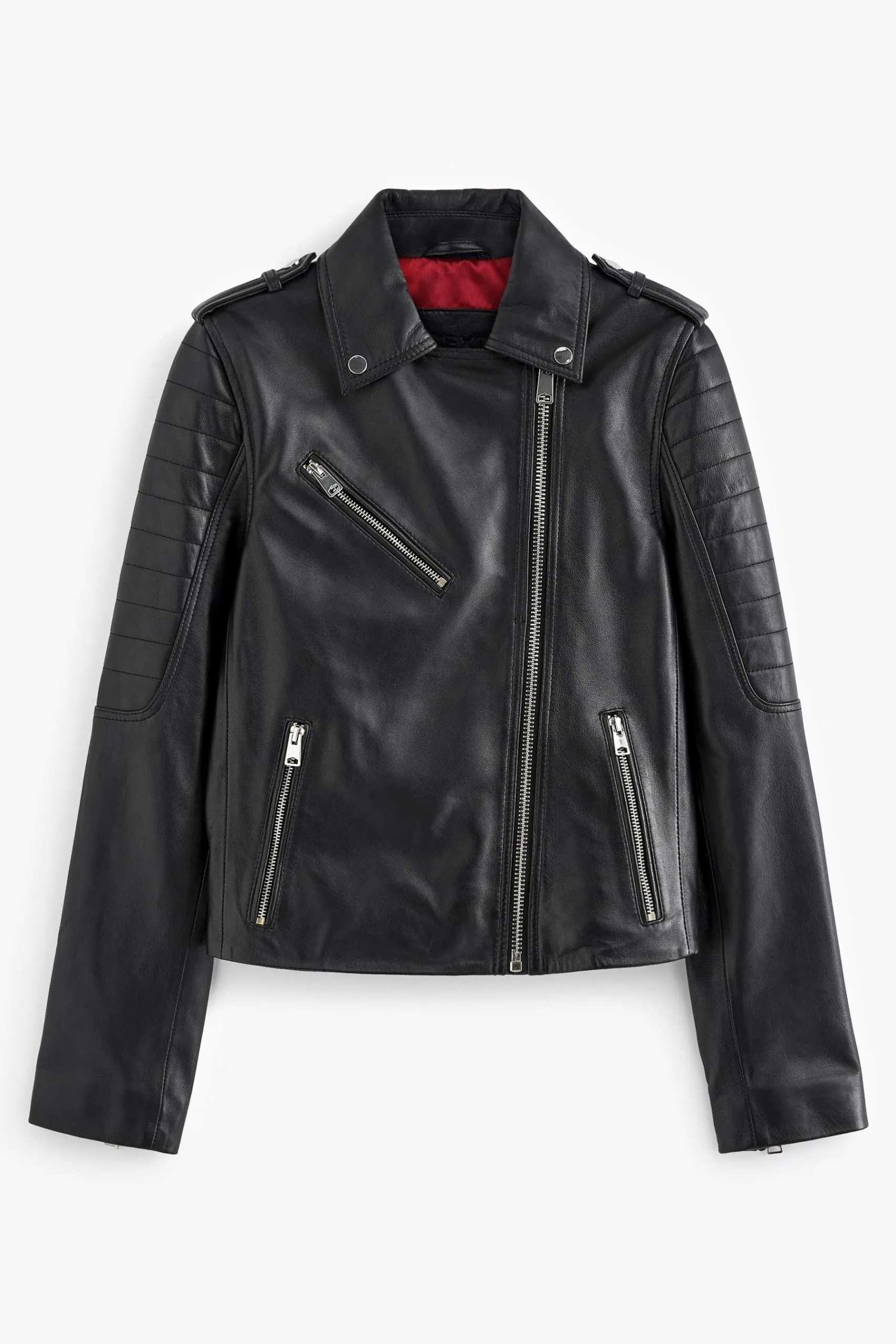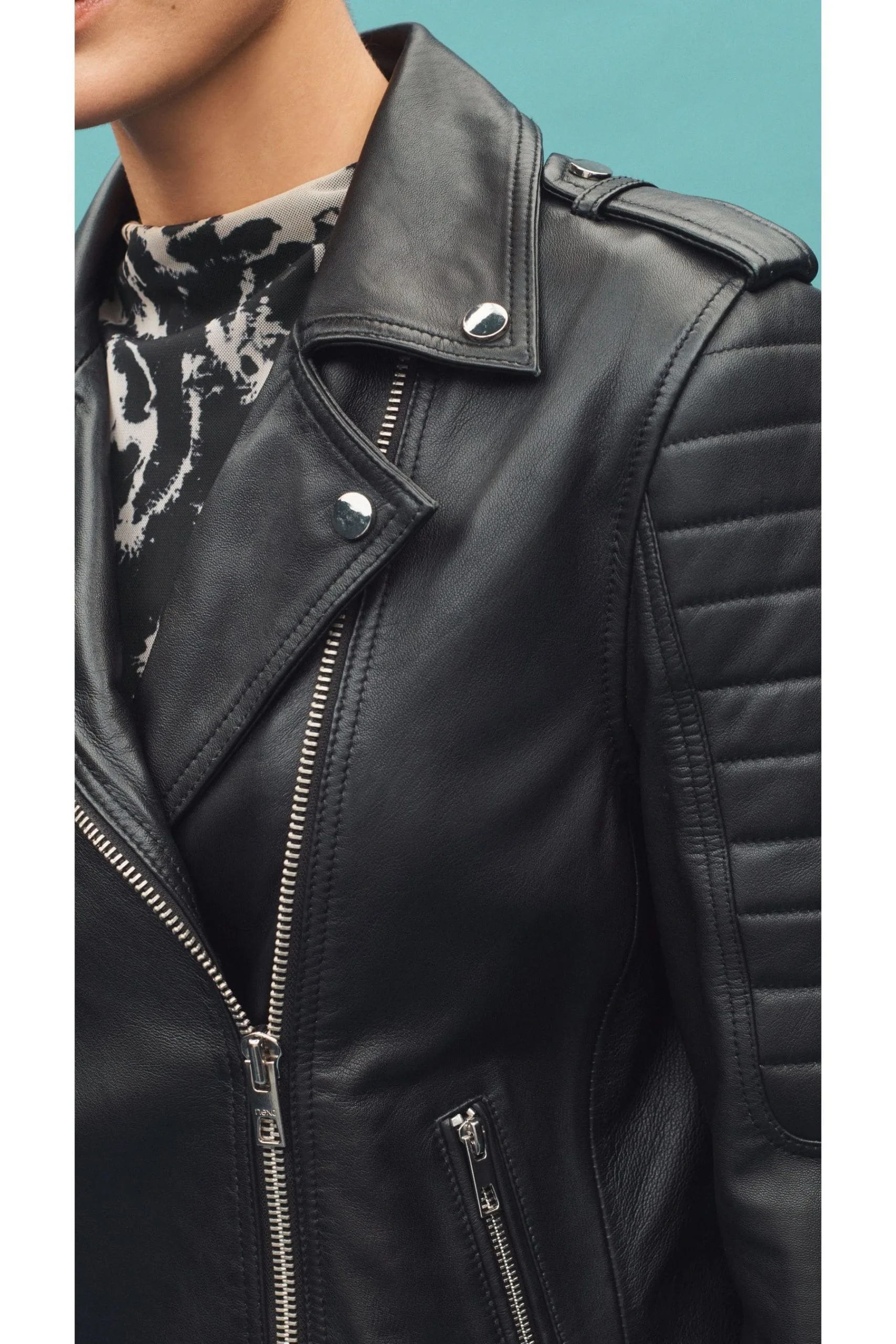 The biker jacket is a timeless, classic but utterly cool silhouette you'll wear season after season. Made from premium real leather featuring zip pockets with quilting down the arms and shiny silver hardware for a classic everyday look. Style with a floral dress or loose leg ripped jeans, there really isn't a jacket out there like it when it comes to versatility.