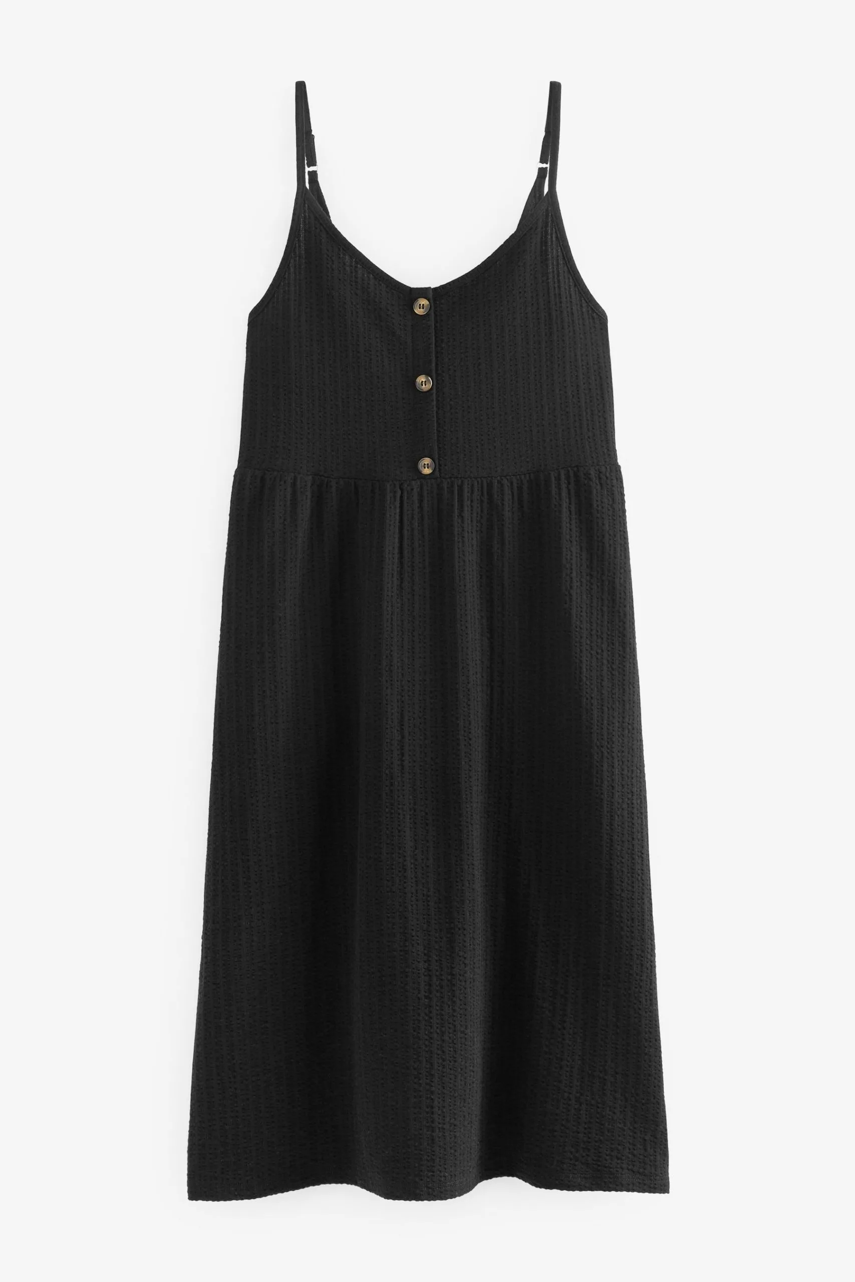 Add this summer staple to your suitcase, our black button-down midi dress is lightweight, comfortable and stylish. Designed in a midi length with button detail to the front and adjustable cami straps. Hello, warm weather.