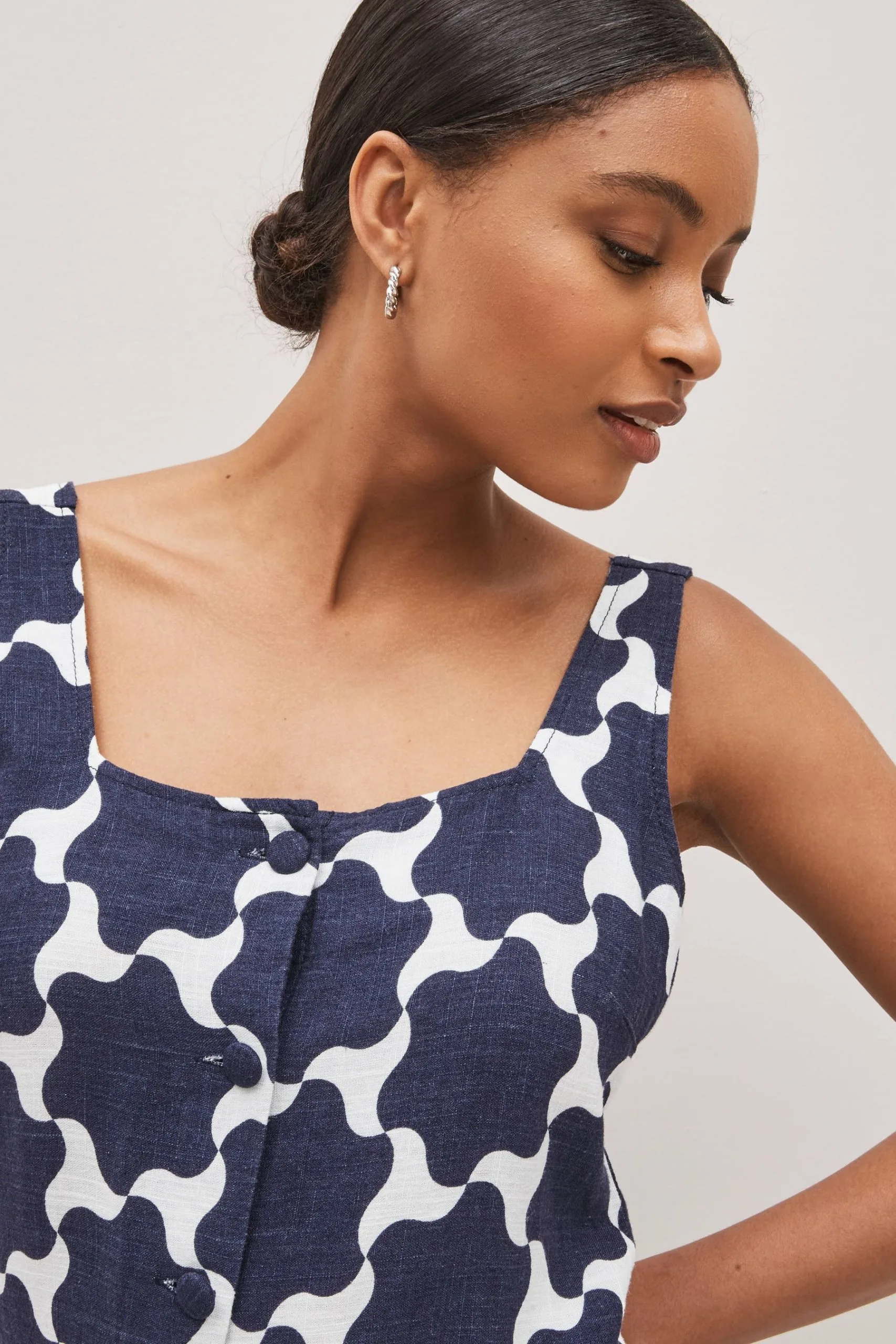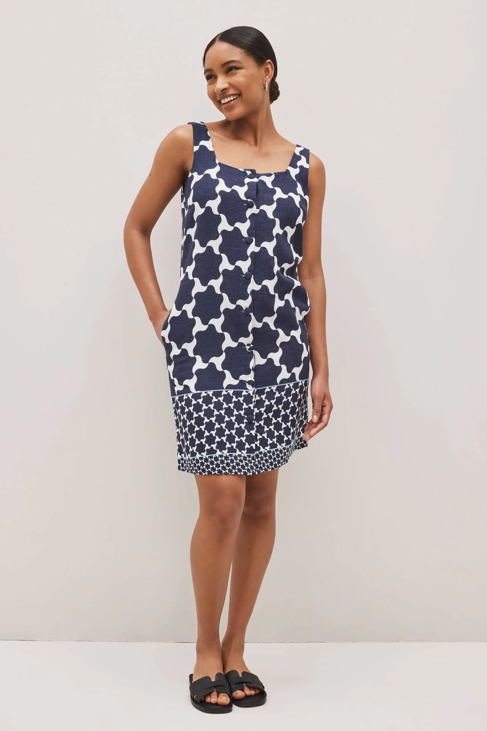 Let us introduce you to the perfect little summer dress your holiday wardrobe is missing. Made from a lightweight and breathable linen blend, this charming silhouette features thick double straps with fabric-covered button fastenings down the front that can be undone or done up to suit your style. Team this classic dress with a pair of sandals and sunnies for the perfect day look.