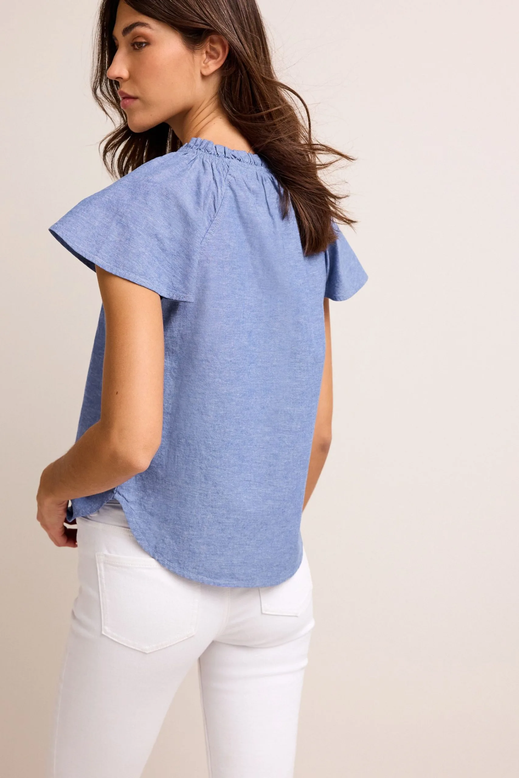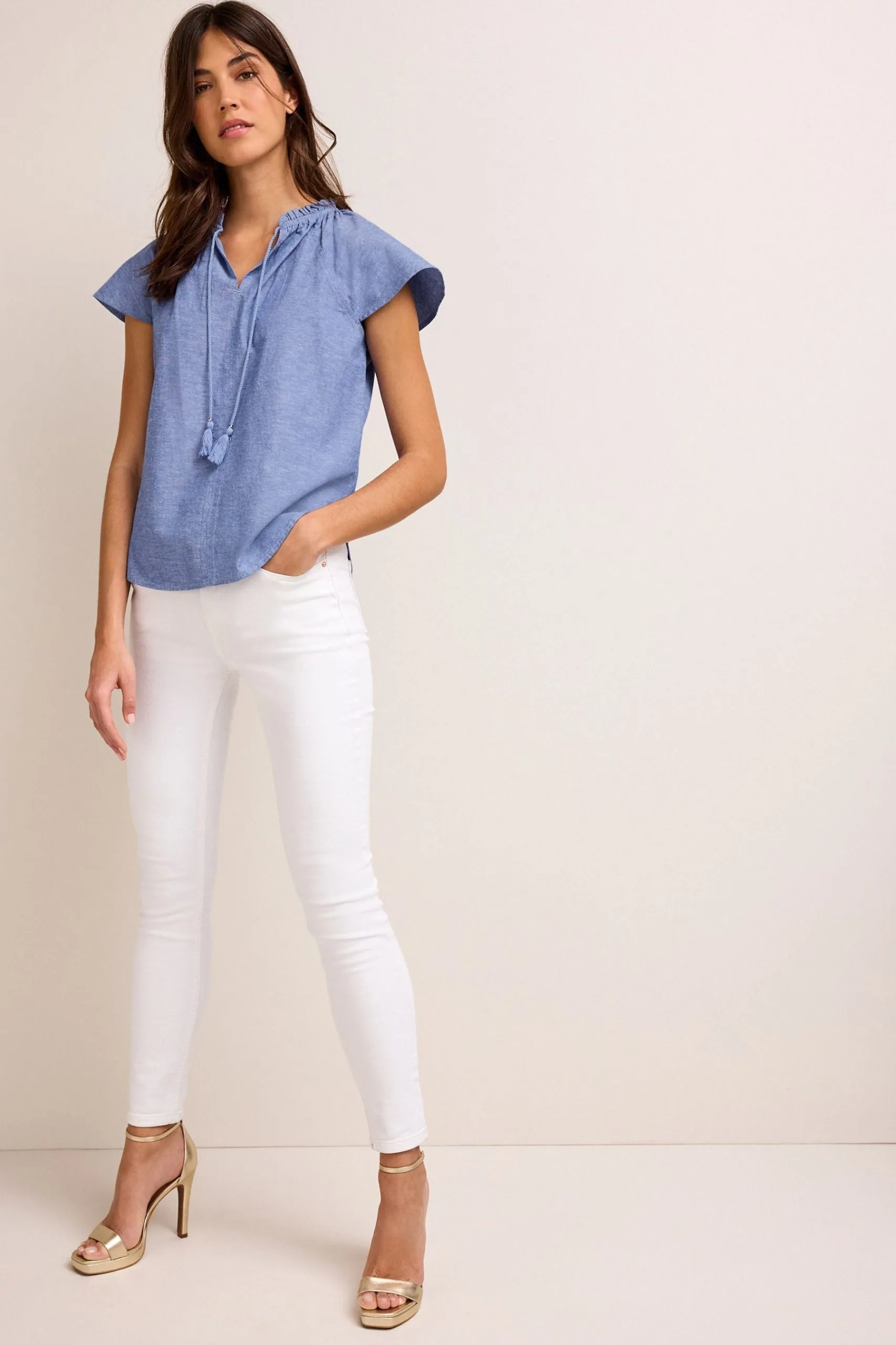 Giving us serious summer feels, our capped sleeve top is ideal for the warmer weather. Made in a soft and breathable viscose/linen blend with a notch neck featuring frill detailing and finished with tassel ties. Designed in a relaxed fit with a flattering curved hem.