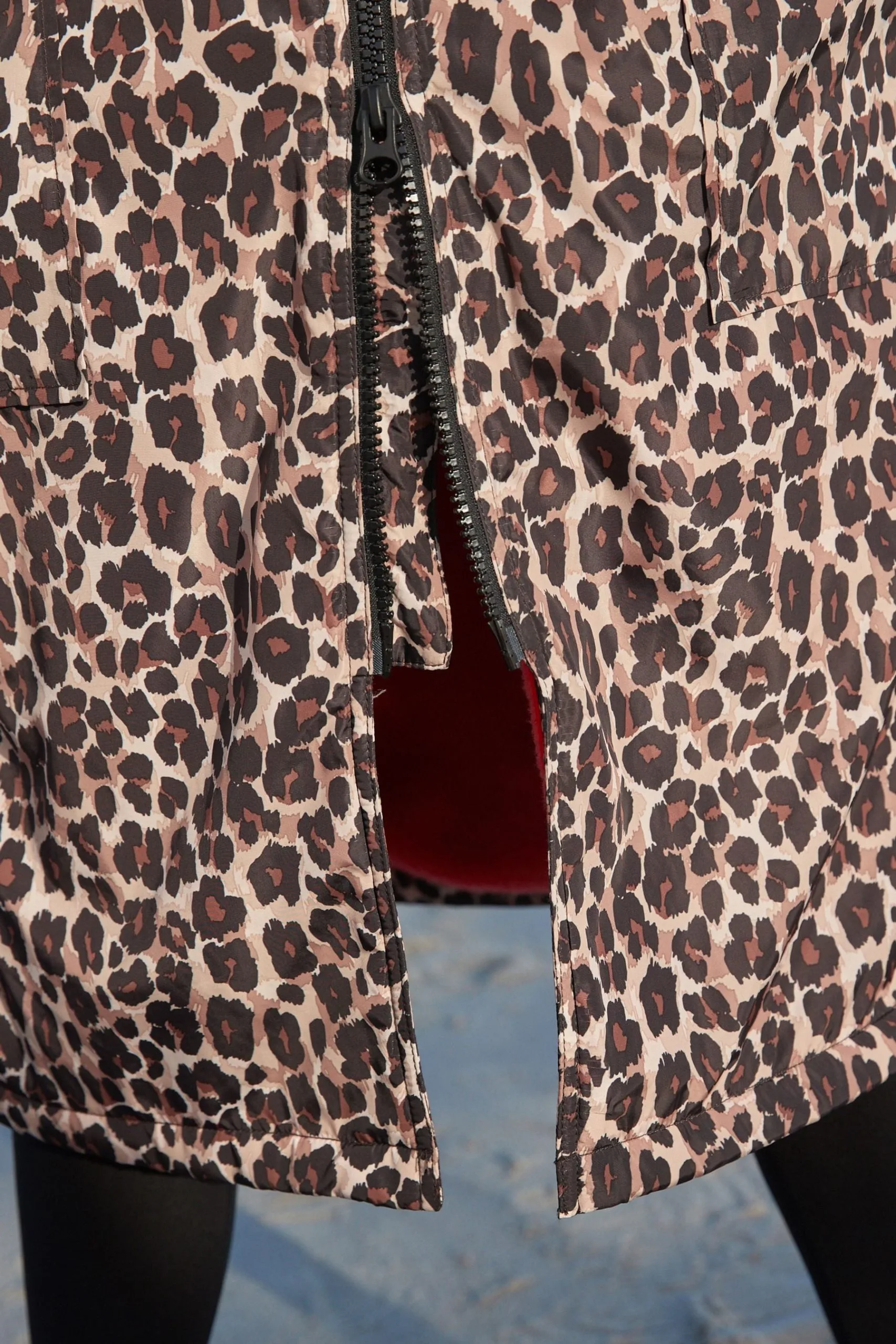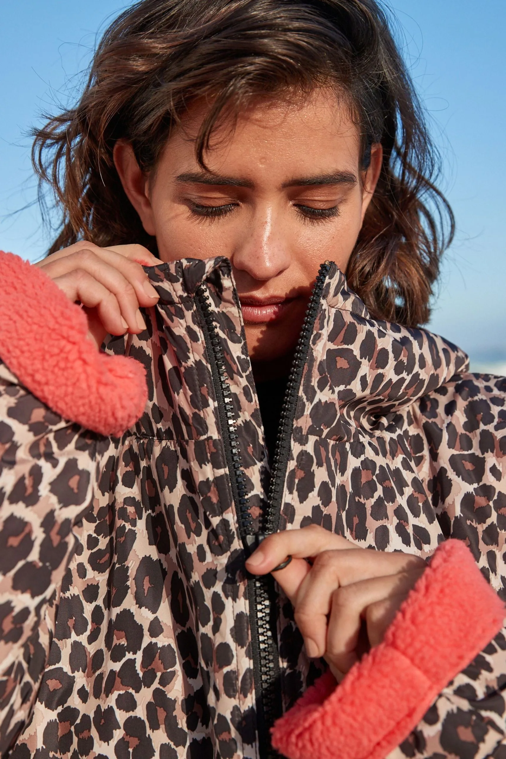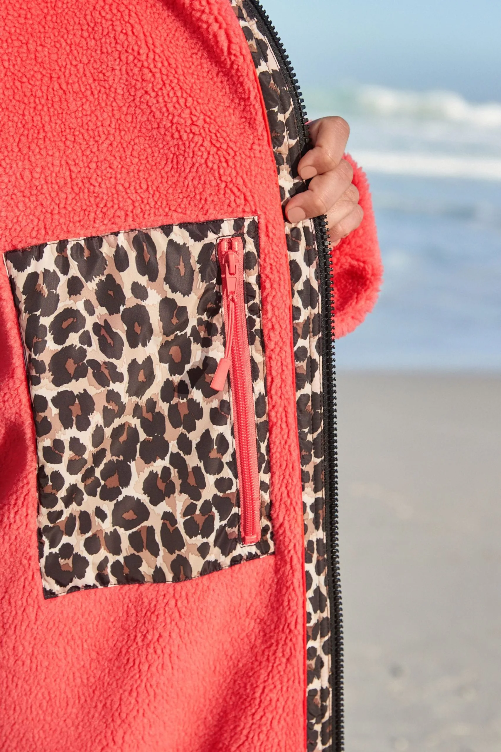 This animal print coat is designed to keep you warm and dry for discreet changing outdoors, before and after water sports. Made in an oversized fit from breathable material that is also shower resistant. With a snuggly contrast fleece lining to keep you feeling toasty and a large cosy hood. Also featuring a front zip fastening, two large patch pockets and a zipped internal pocket.