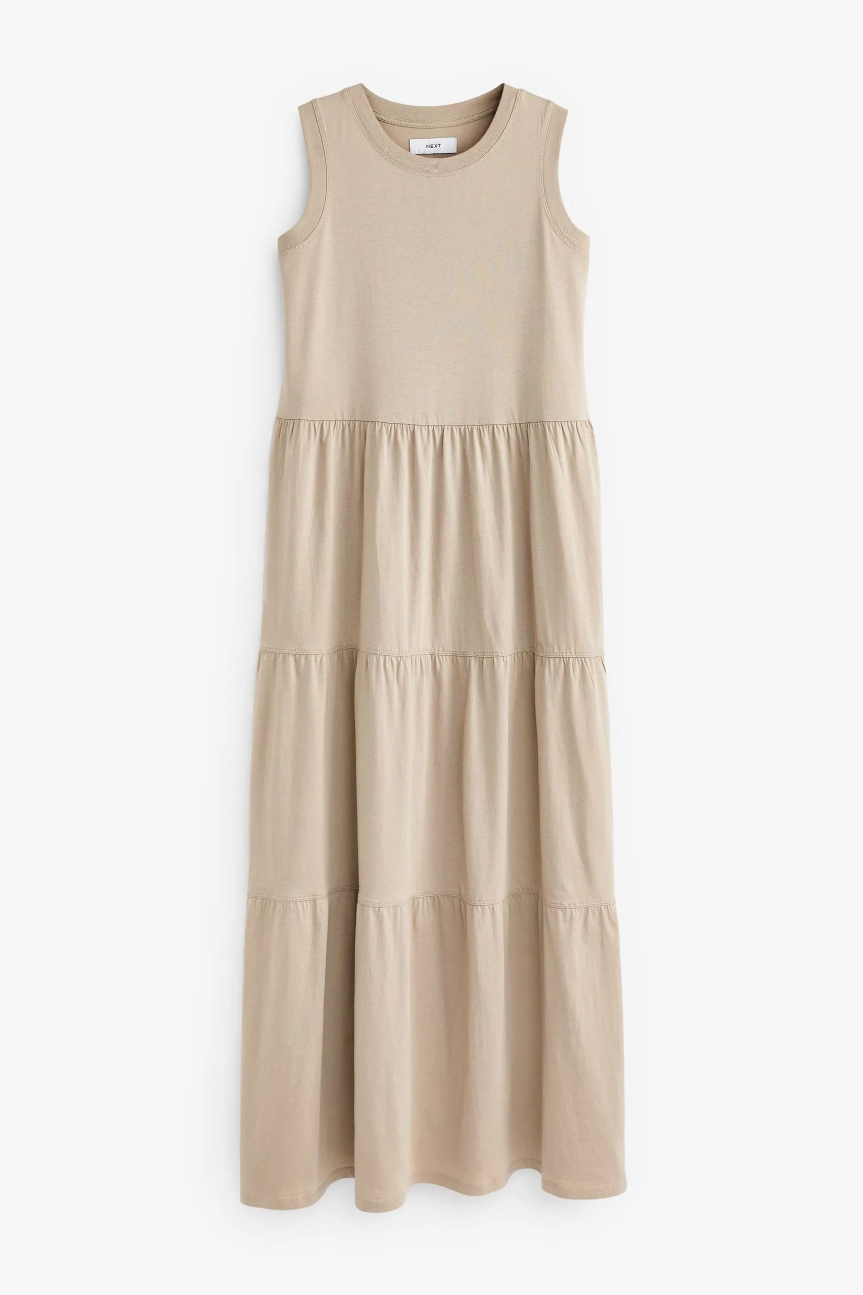 Next Cotton Sleeveless Crew Neck Tiered Maxi Dress