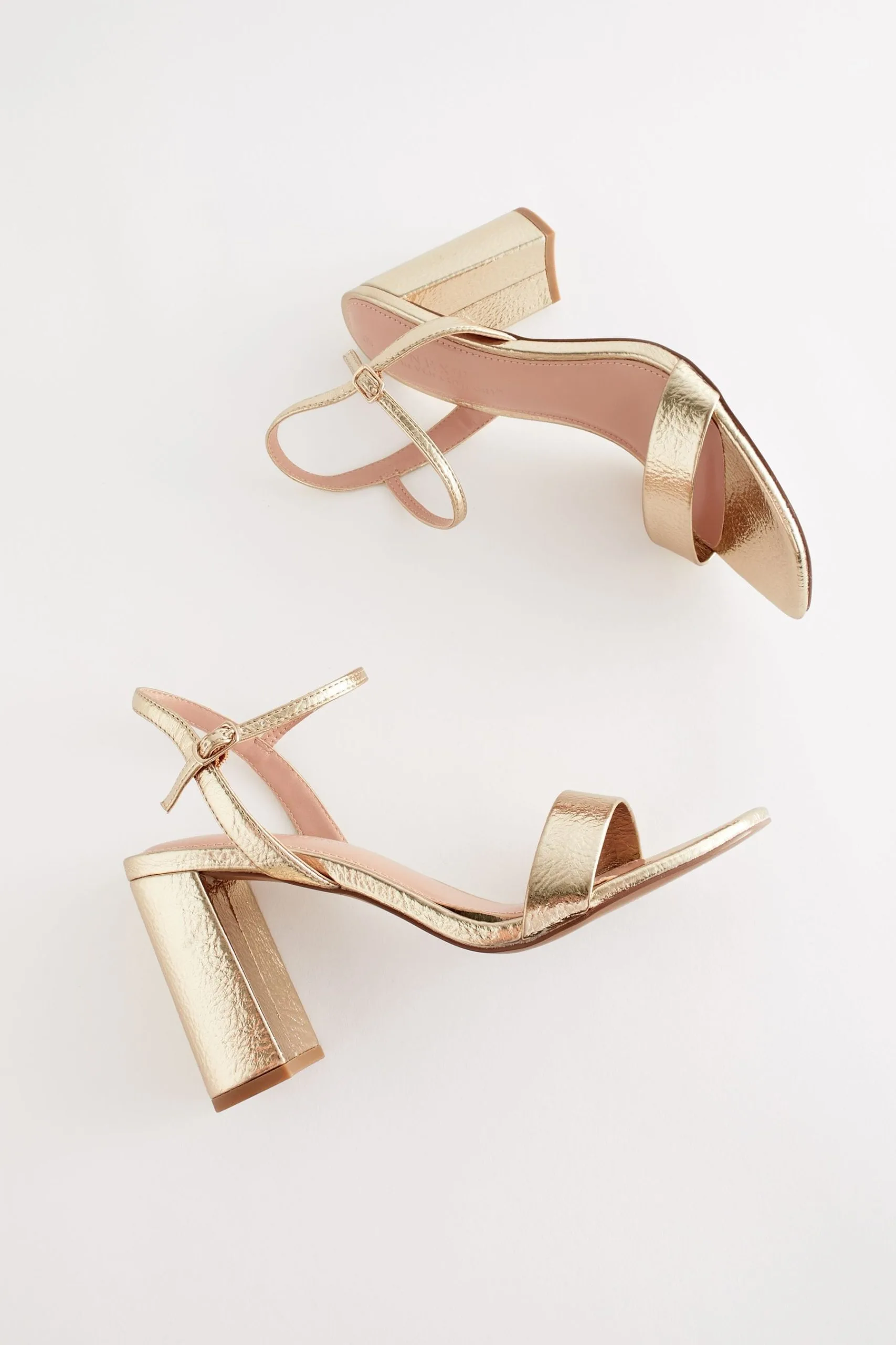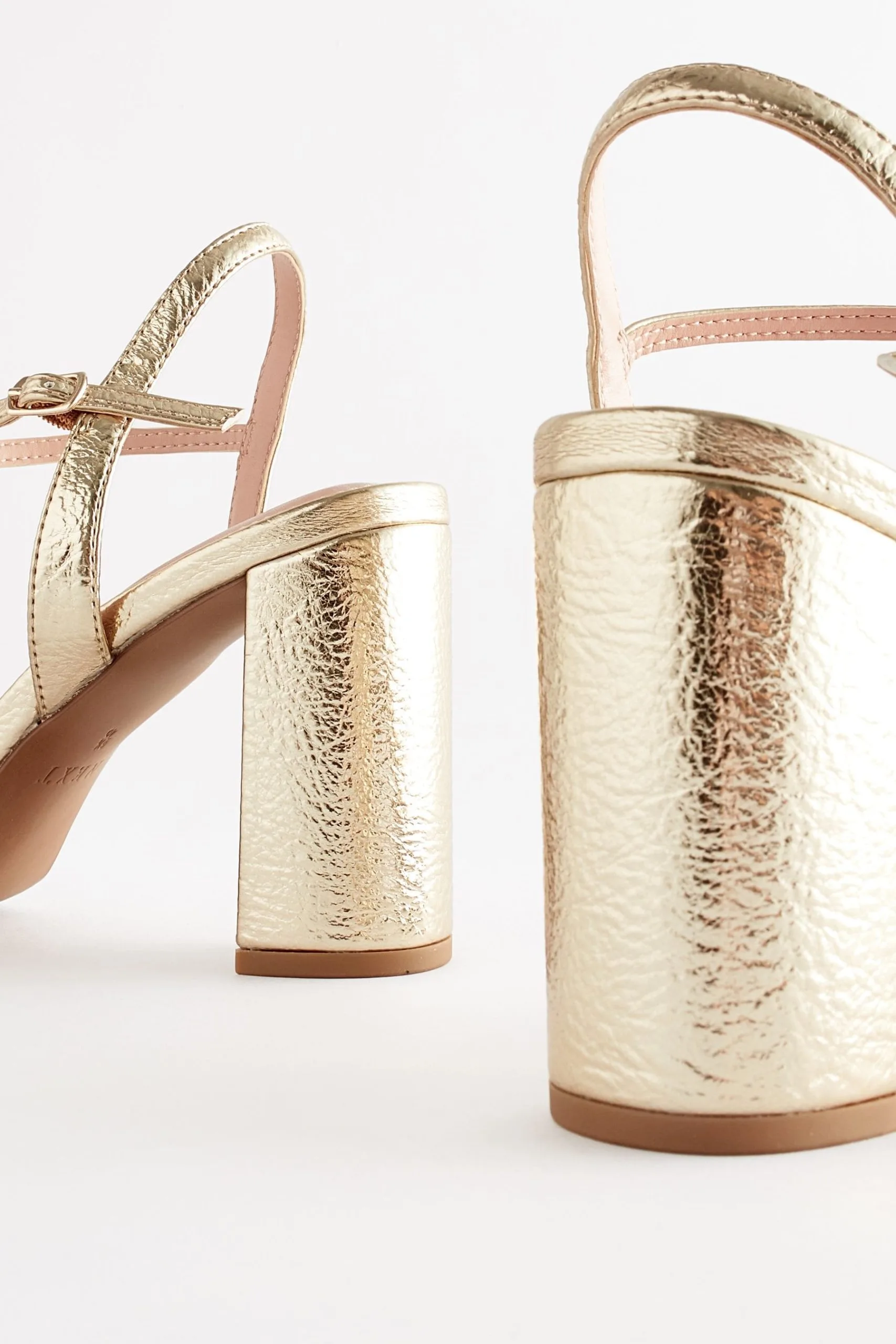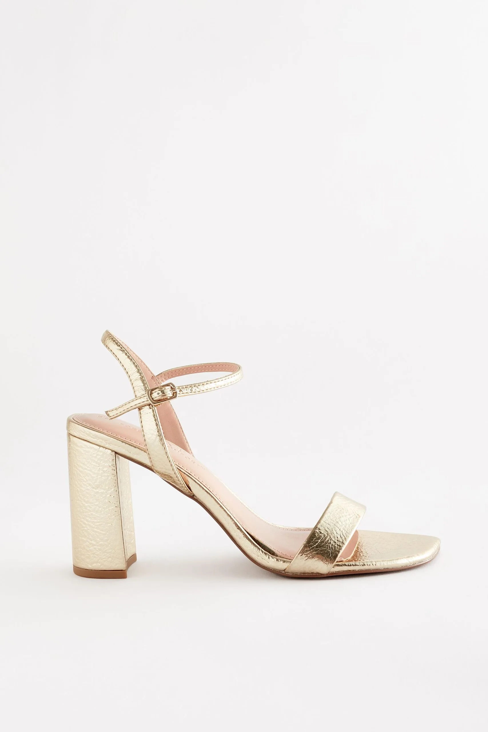 Great for an evening out these gold sandals feature a single strap across the toe, block heel and an adjustable ankle strap. Finished with Forever Comfort padding with a memory foam layer to help you stay on your feet all day (or night) in comfort and style.