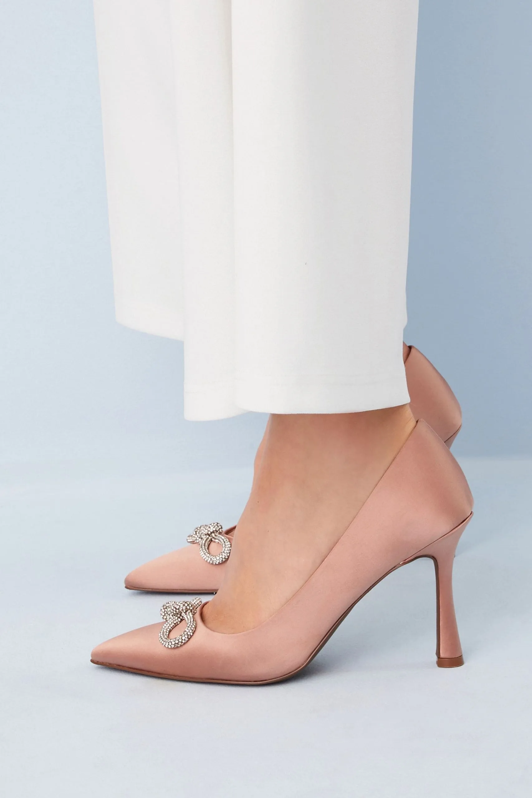 A stunning pair of showstopper heels that are guaranteed to liven up any look you team them with. The vivid orange court shoes have a classic pointed toe with a stylish curvy heel and are beautifully finished with a diamanté bow detail on the front. Blending comfort and style, these gorgeous shoes have a silky satin upper and are fitted with our Forever Comfort® padding with a memory foam layer to help you stay on your feet all day in comfort.