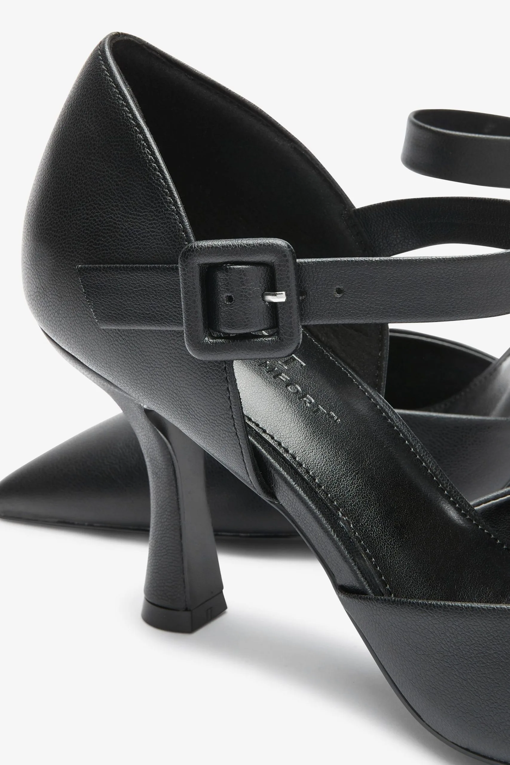 Heels for work, and drinks? These heels are a must have. Featuring an adjustable strap with buckle fastening and a sophisticated pointed toe. Flexi soles and soft padding mould to your feet, keeping your workwear comfy.