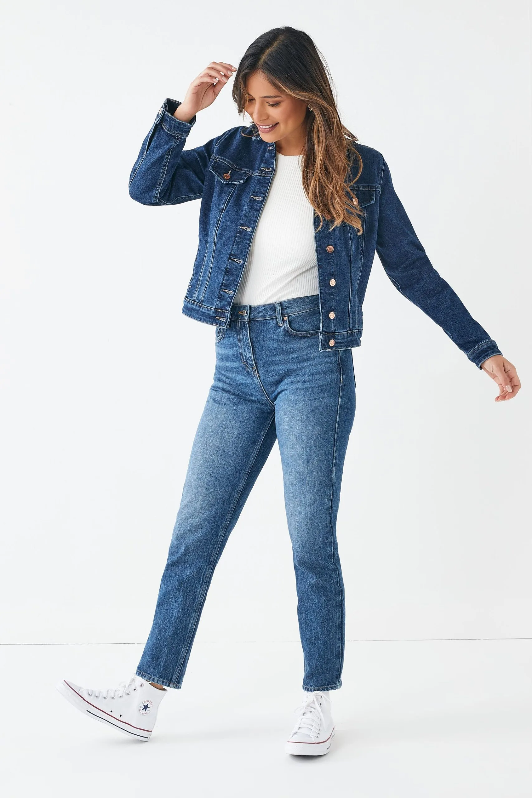 Do you struggle to find a jacket that fits over your bust? Do you end up with a jacket two sizes too big that doesn’t fit properly anywhere else? Then stop scrolling and take a look at our fuller bust denim jacket. This jacket has been carefully designed with additional seams added to create extra room for a fuller bust without compromising on the fit of the rest of the jacket. Featuring button fastening and patch pockets, our supersoft and stretchy denim jacket is a classic wardrobe staple perfect for everyday wear.