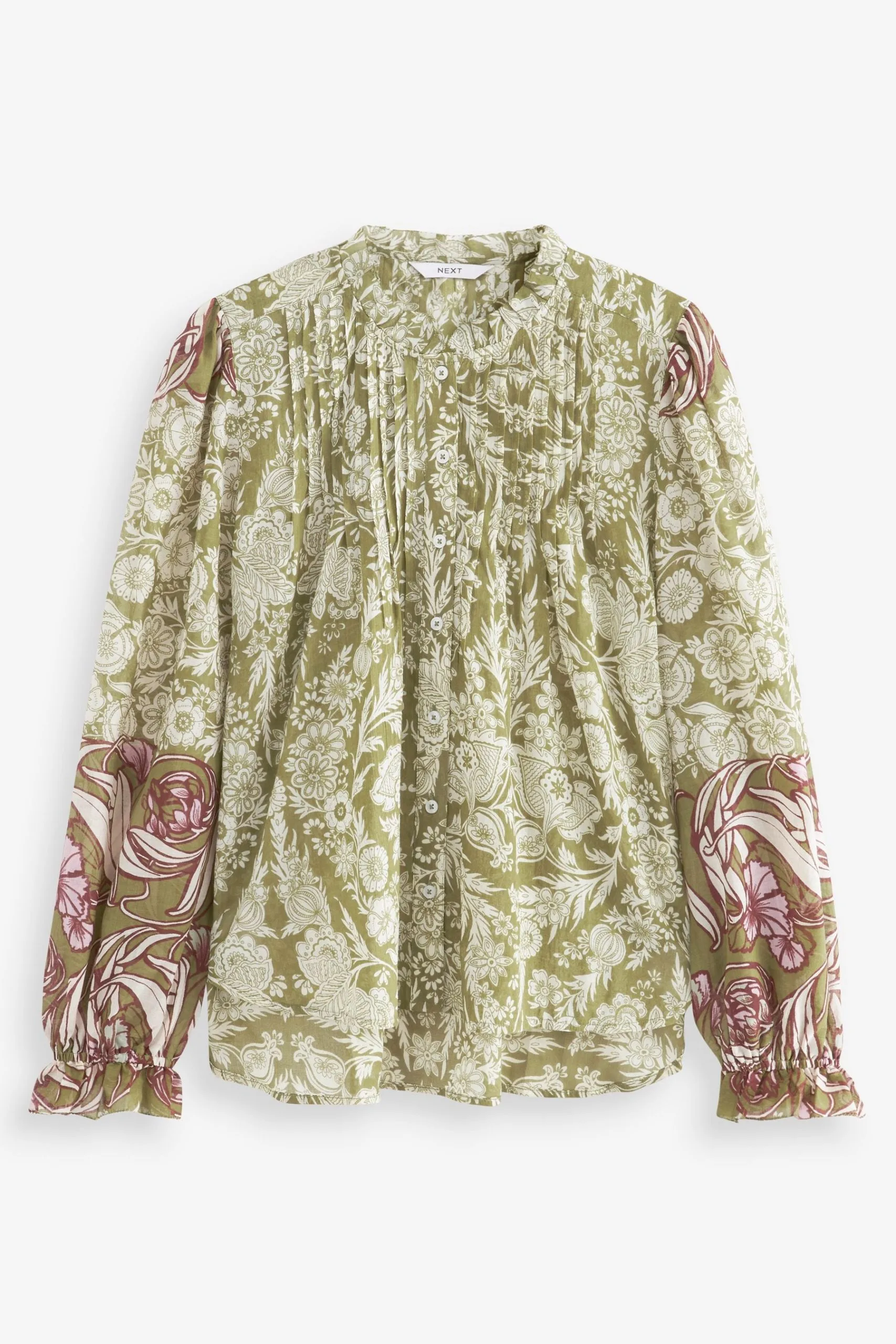 Next Green Floral Ruffle Neck Long Sleeve Blouse