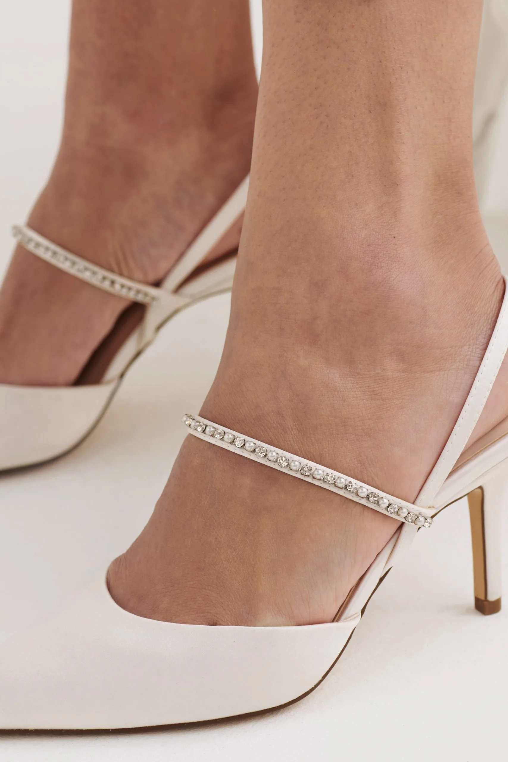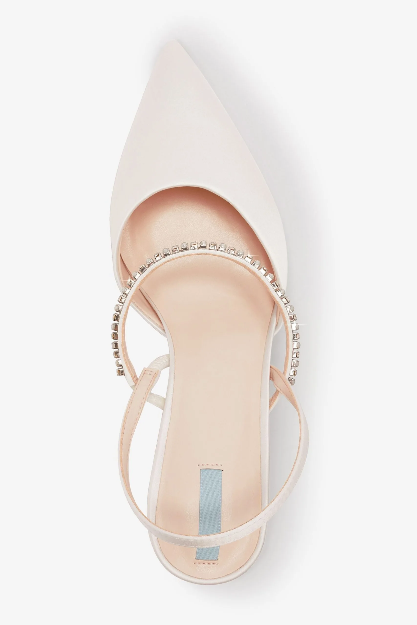With a pretty two-part design, extra cushioning and soft padding that moulds to your feet, these ivory bridal slingback shoes will keep you comfortable all the way through your big day, styled with pointed toes and a jewelled strap. Finished with our Forever Comfort® padding: with Memory Foam layer to help you stay on your feet all day in comfort and style.