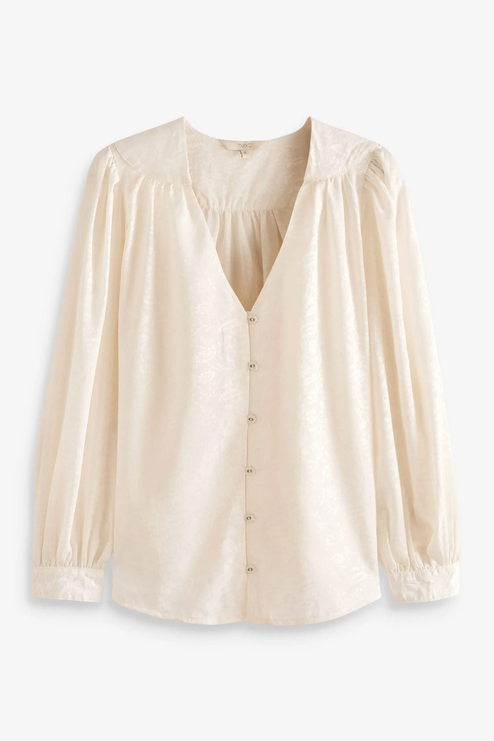 A statement style to take you from day to night. This blouse is crafted in a silky fabric with a jacquard pattern and V-neckline. Complete with button fastenings through the front and cuffed sleeves.