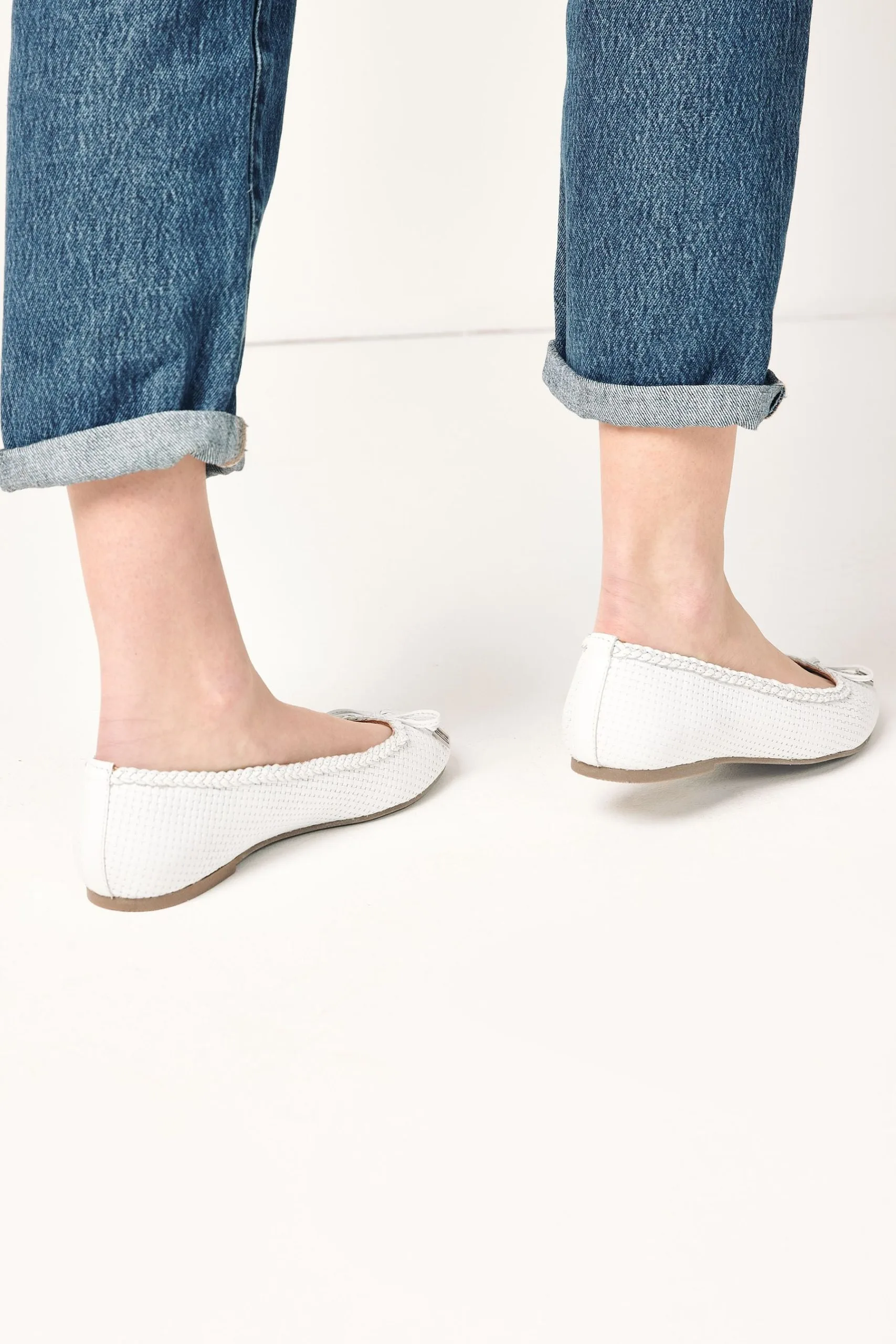Enhance your everyday wardrobe, with these leather weave ballerina shoes. Featuring Forever Comfort®