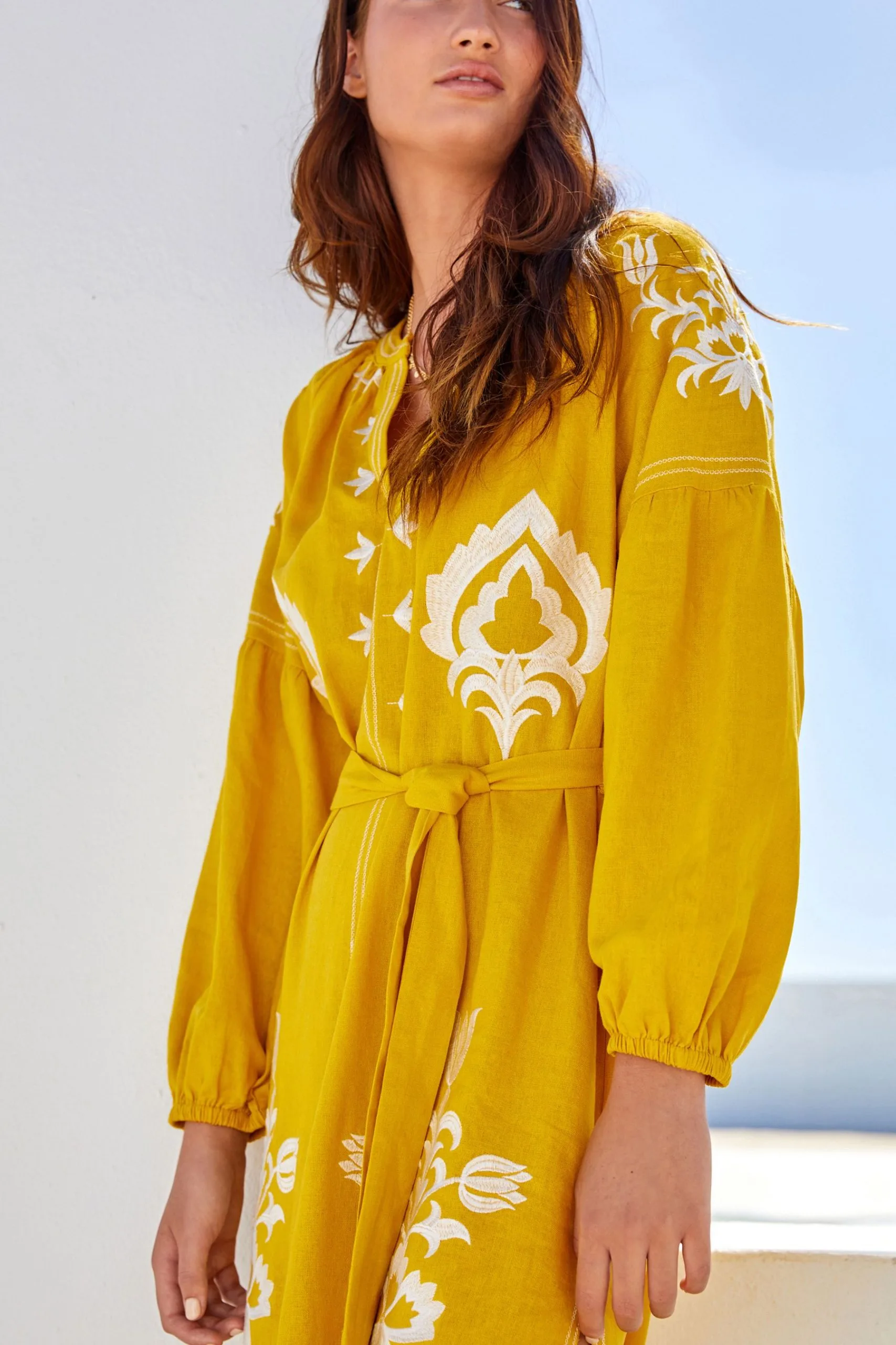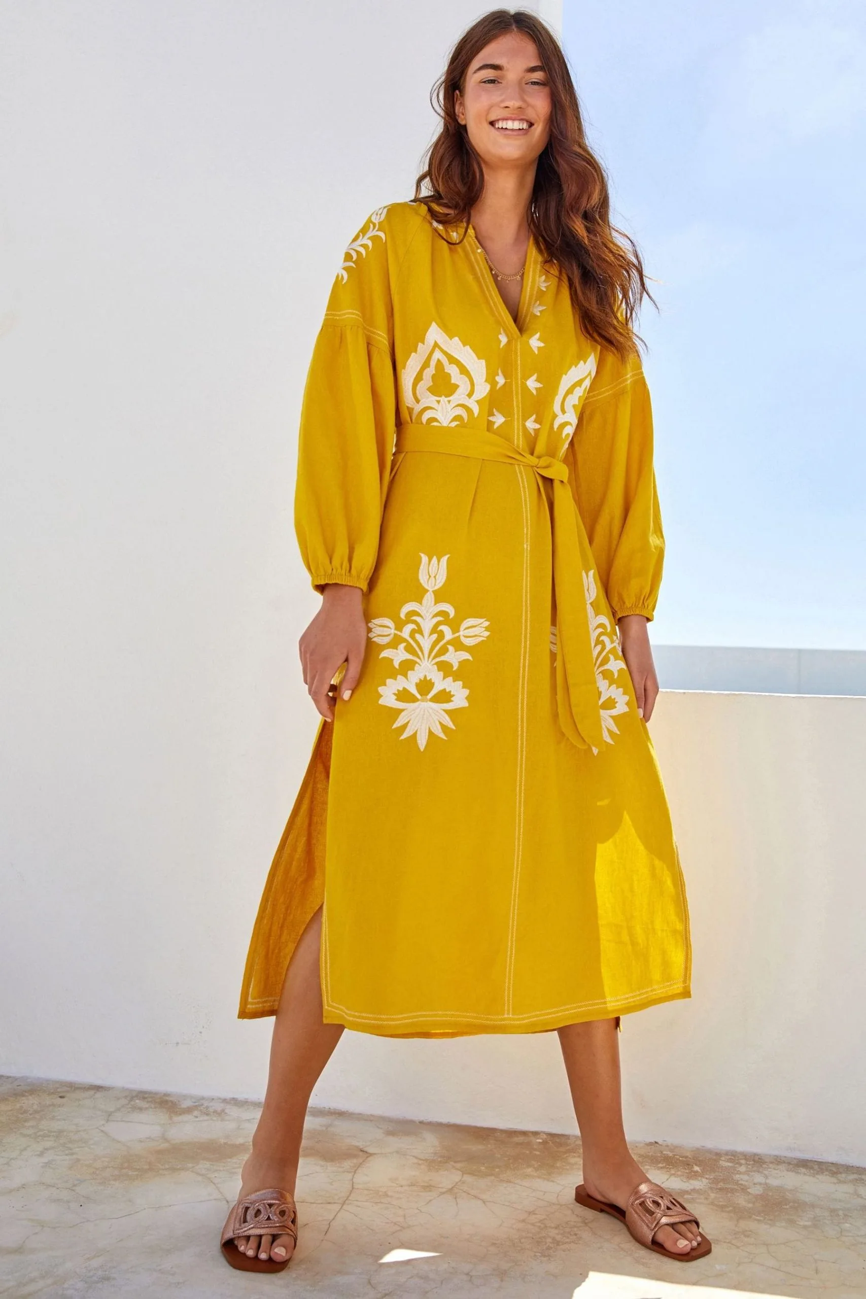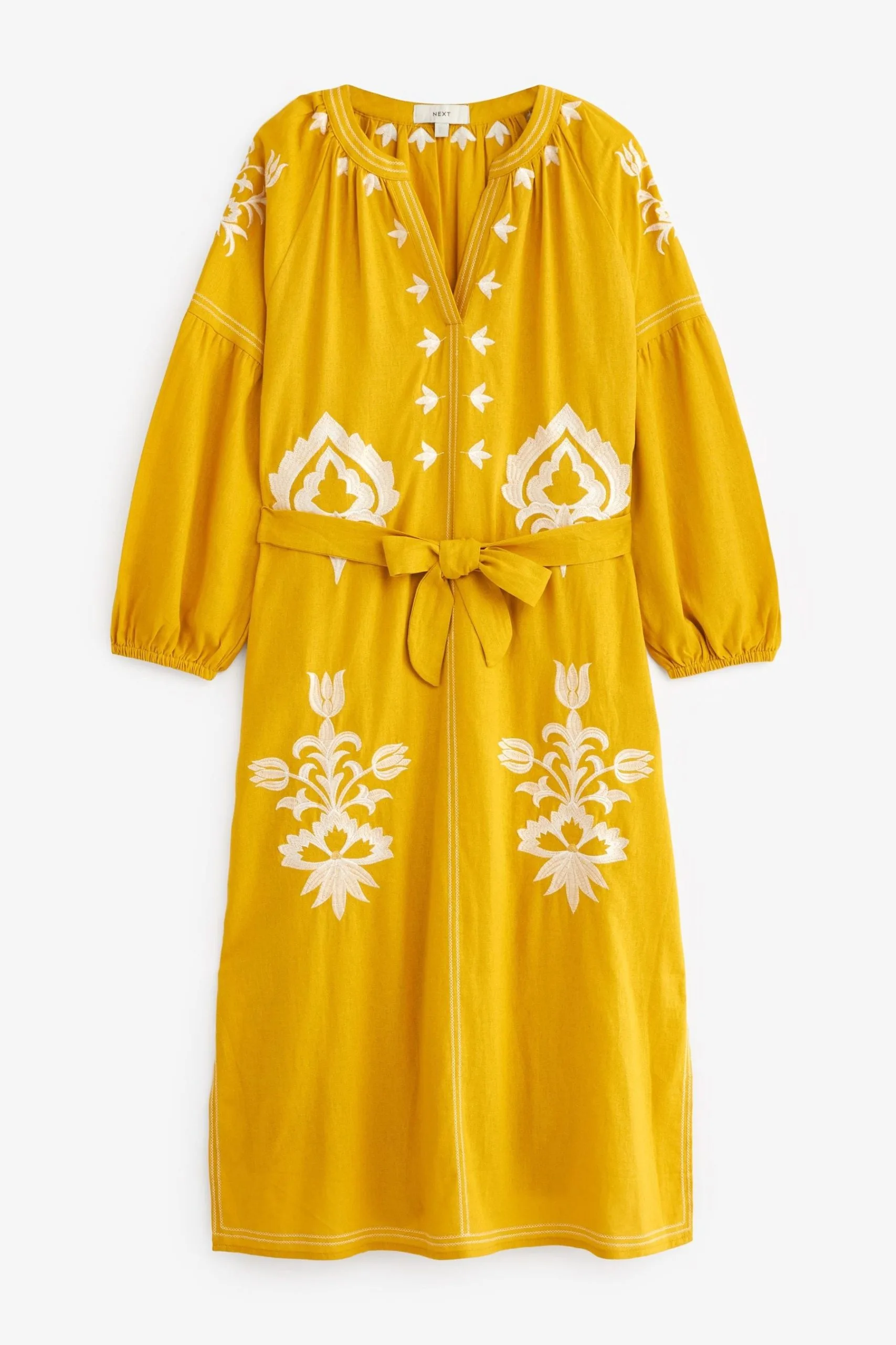 Next Linen Rich Embroidered Midi Summer Dress