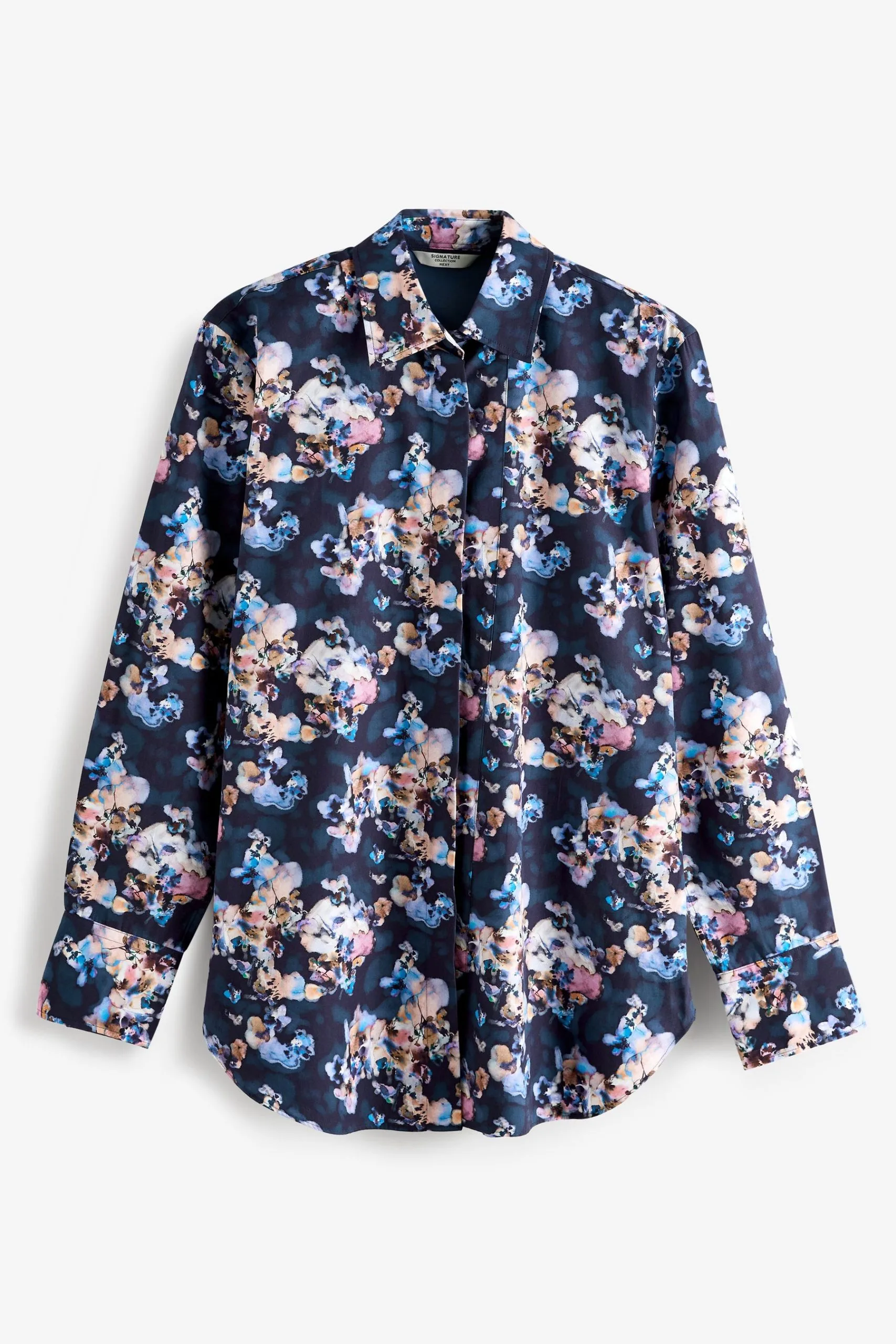 Made from premium super soft cotton with a beautiful drape, this style features a neat turn down collar, relaxed shape and contrast floral cuff lining.