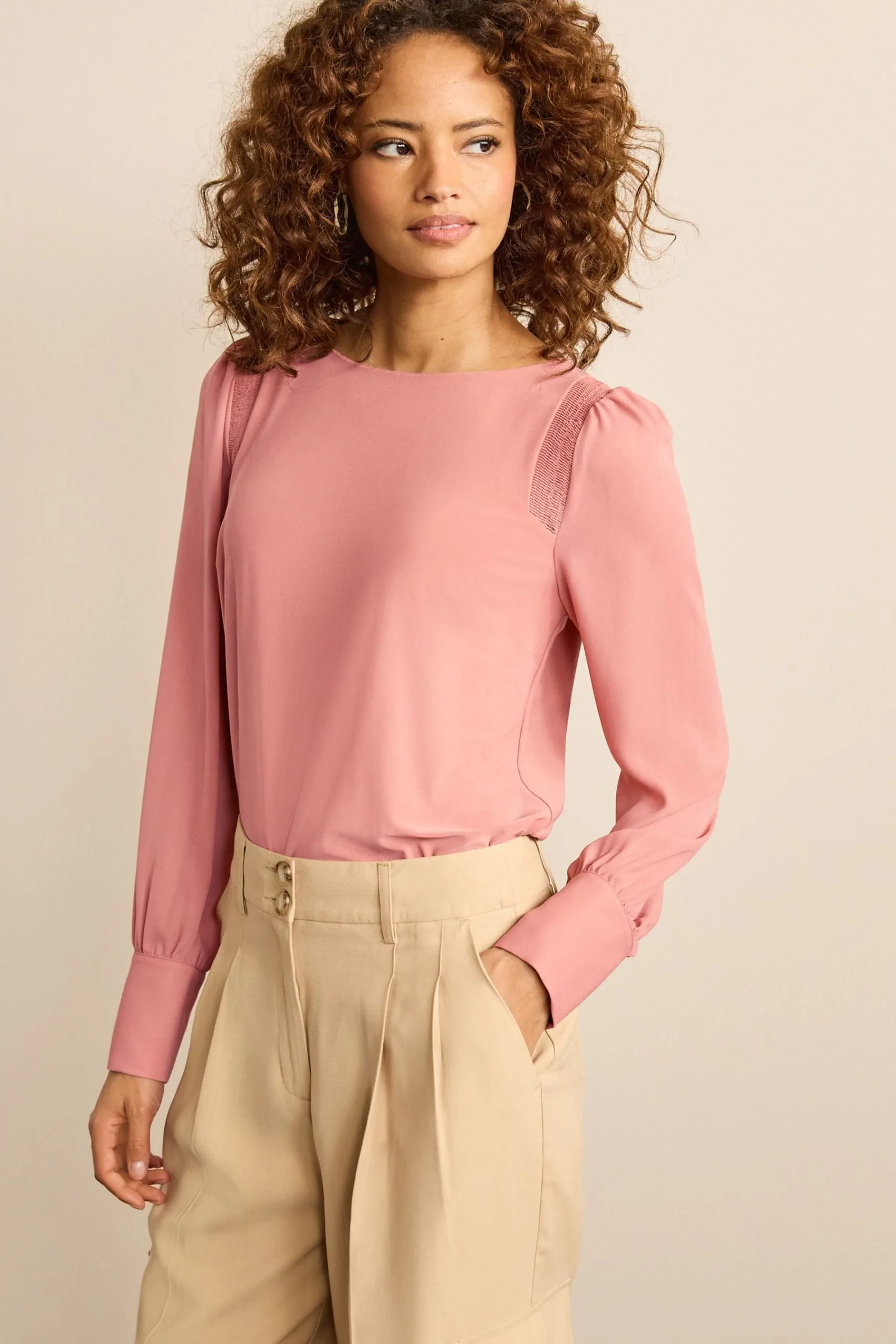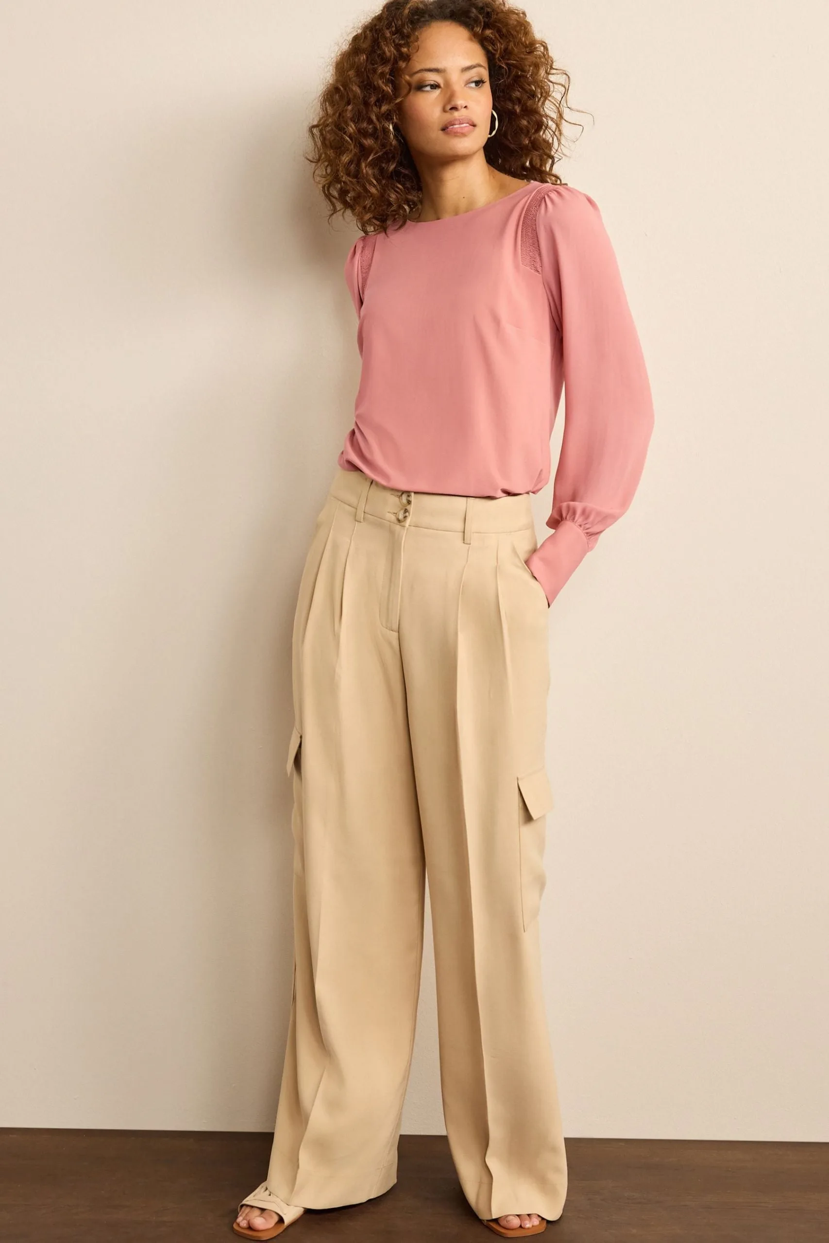 Designed in a classic silhouette, our long sleeve crew neck cuff blouse is the perfect addition to your wardrobe. From workwear to dinner with the girls we know you'll look as good as you feel in this easy-to-wear piece. Designed in a flattering and floaty fabric with statement sleeves complete with a deep cuff and boat neckline.