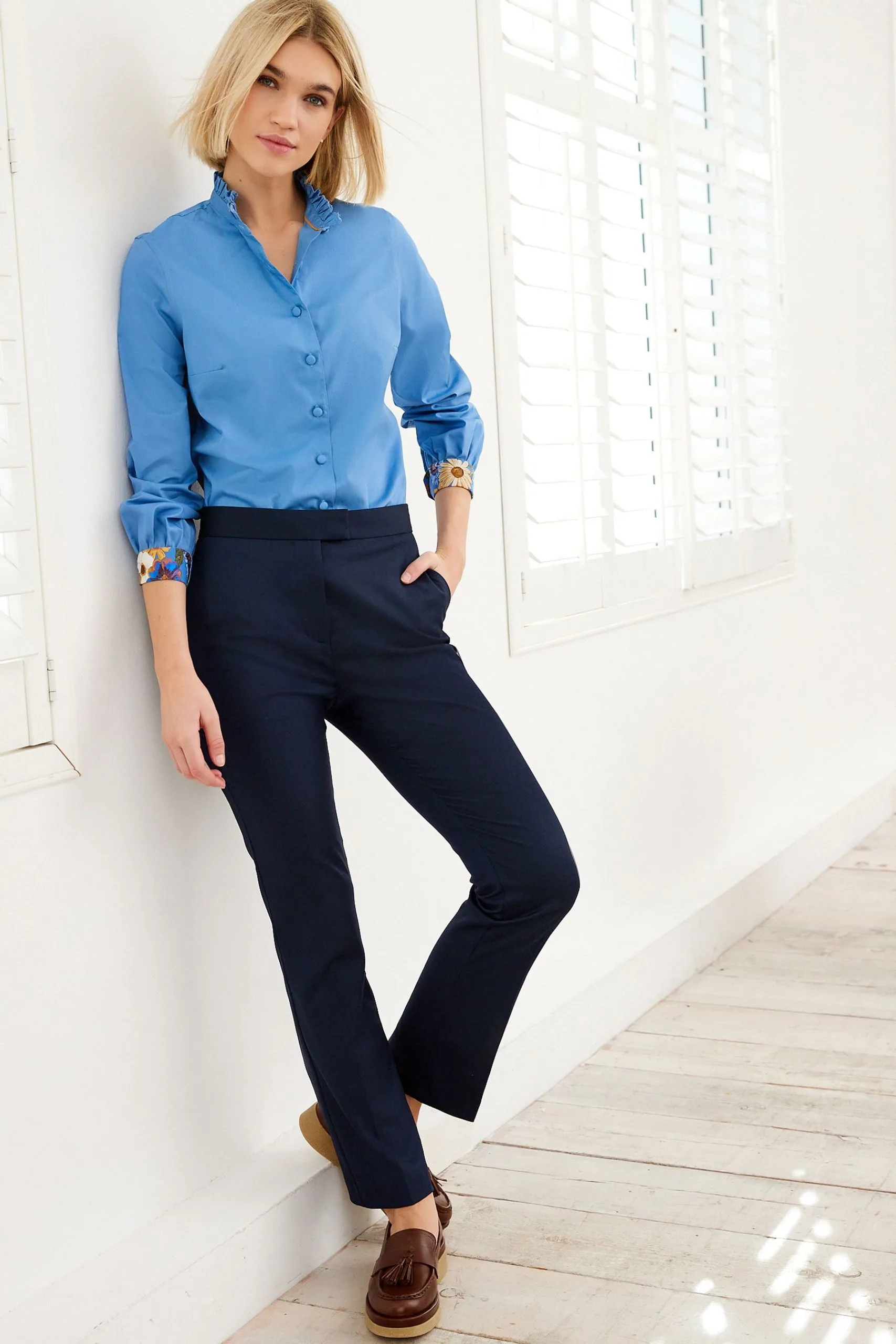 The short ruffle collar adds structure to the neckline and maintains the shape of this well-cut blouse.