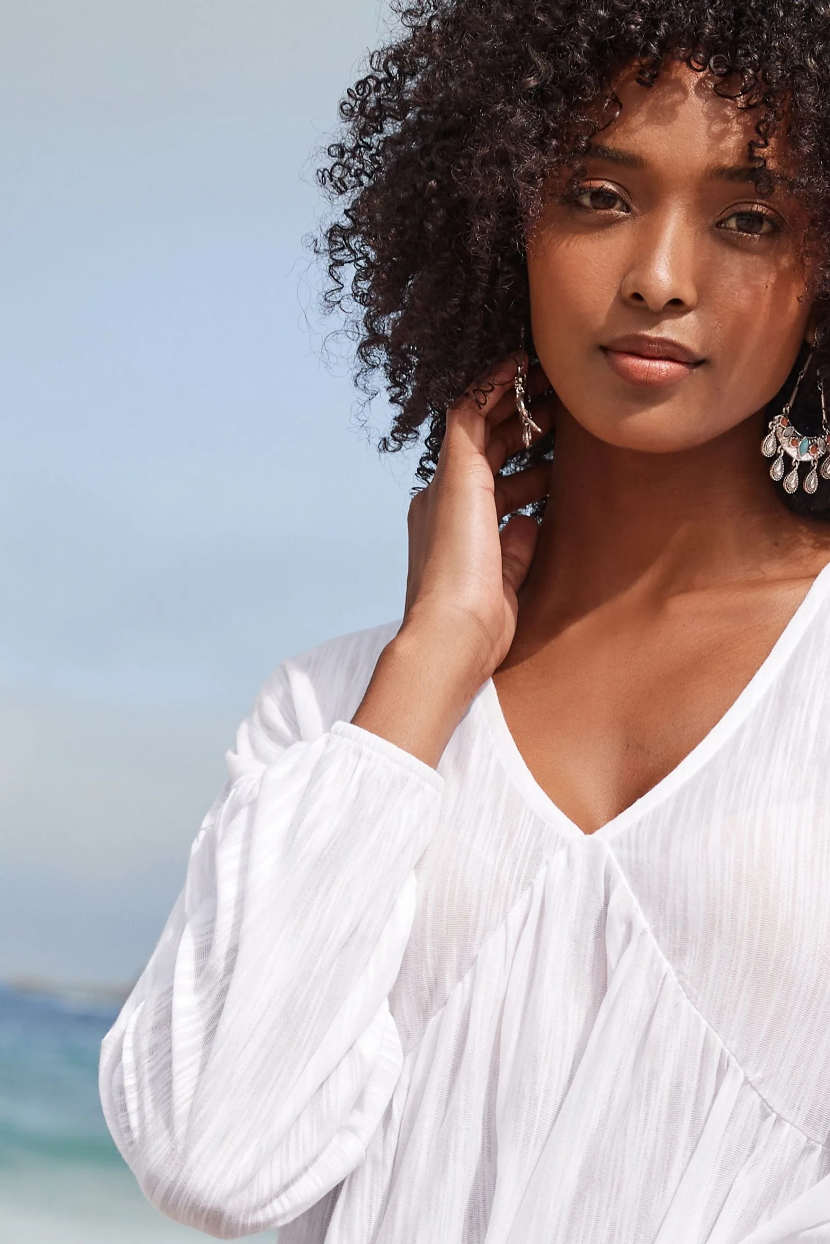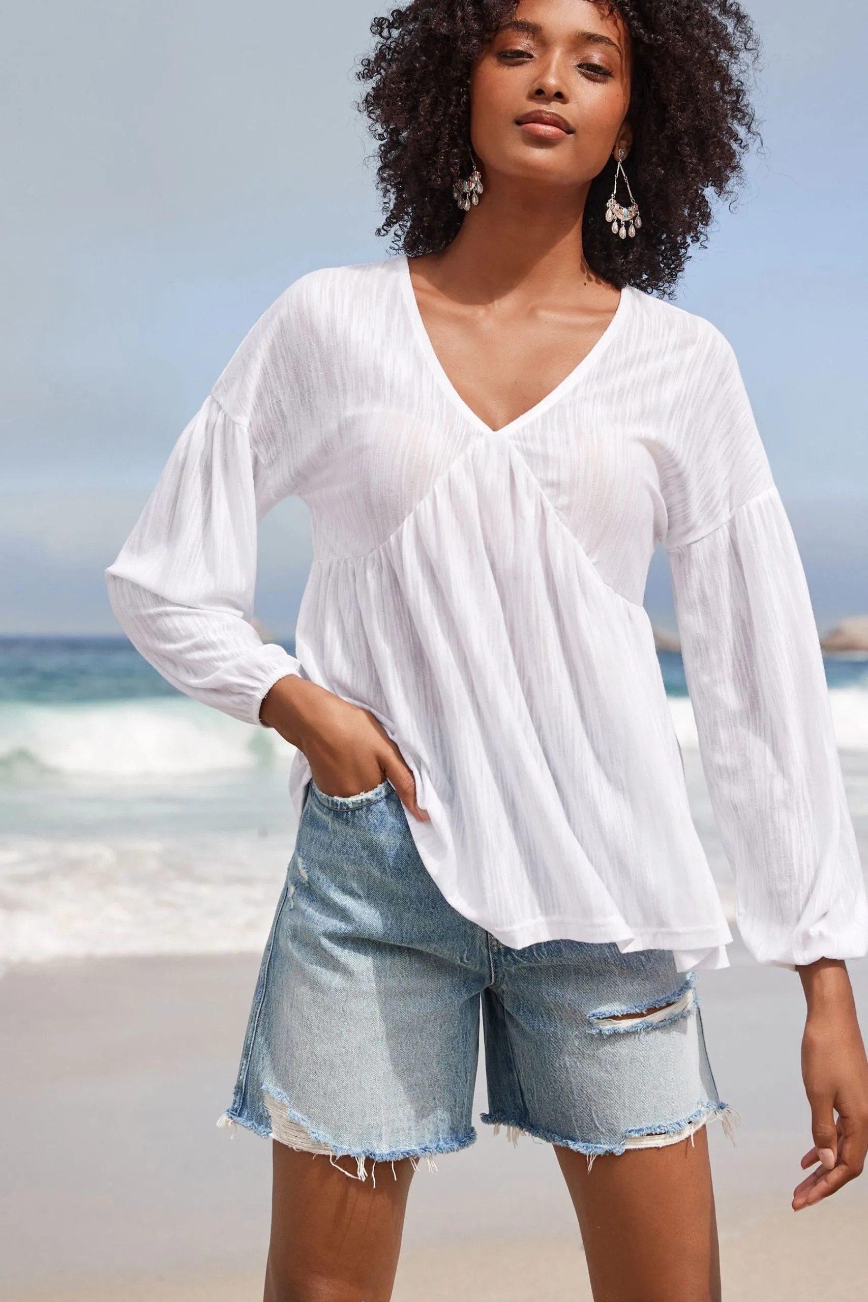 Bring a touch of boho chic to your wardrobe with our long sleeve v-neck blouse. Designed with dropped shoulders, balloon sleeves and in a floaty relaxed fit for a flattering and feminine finish. This versatile style can be dressed up or down.