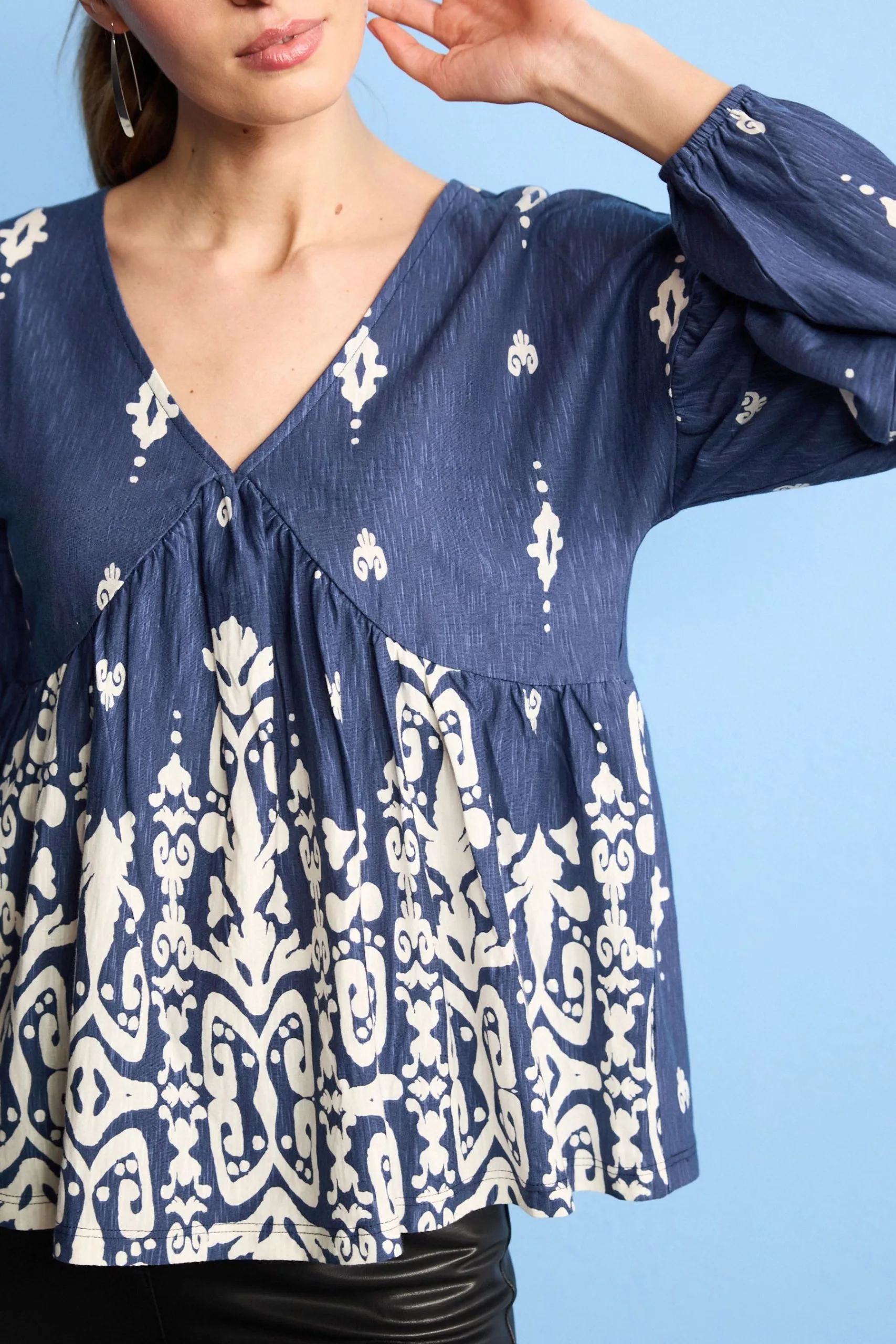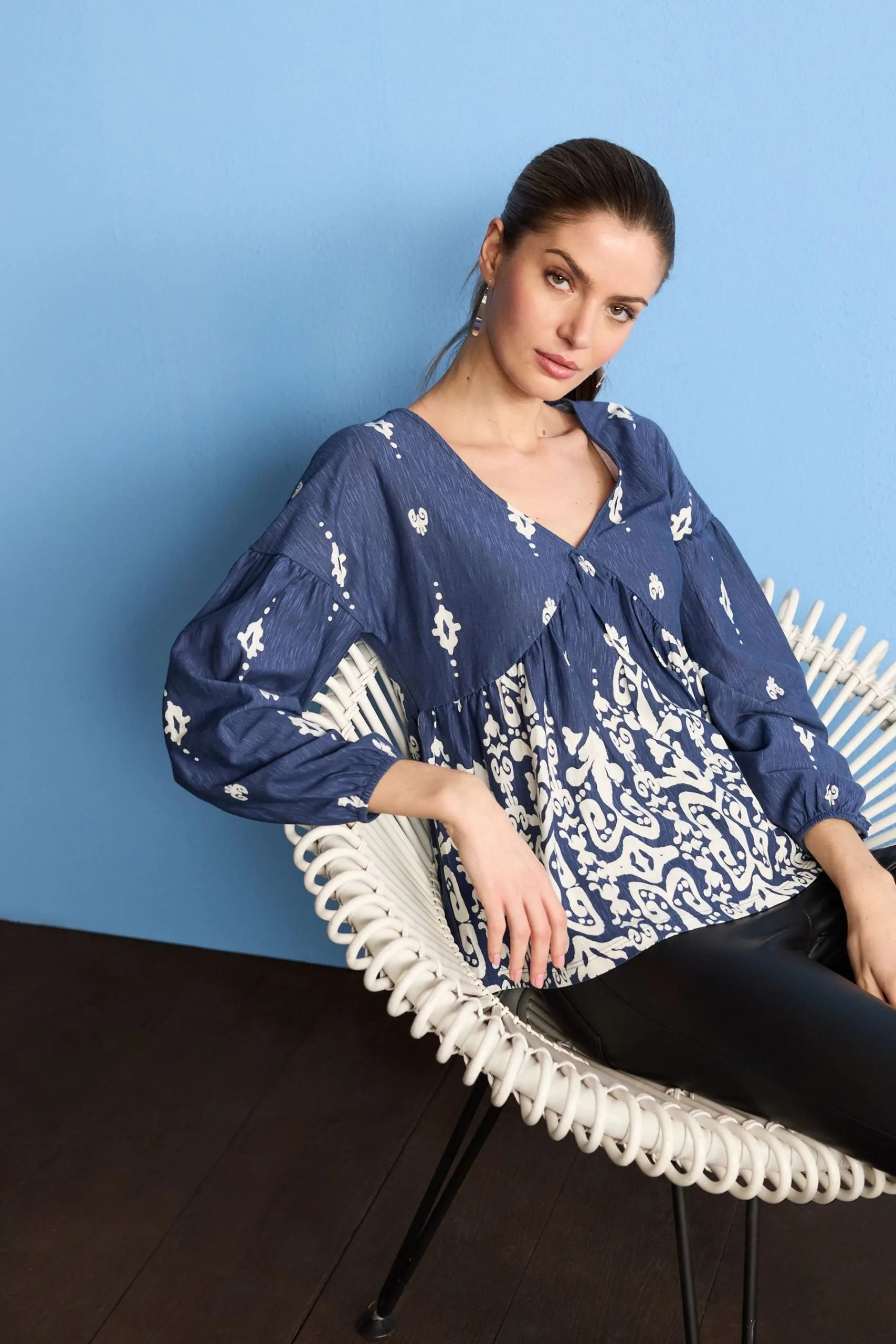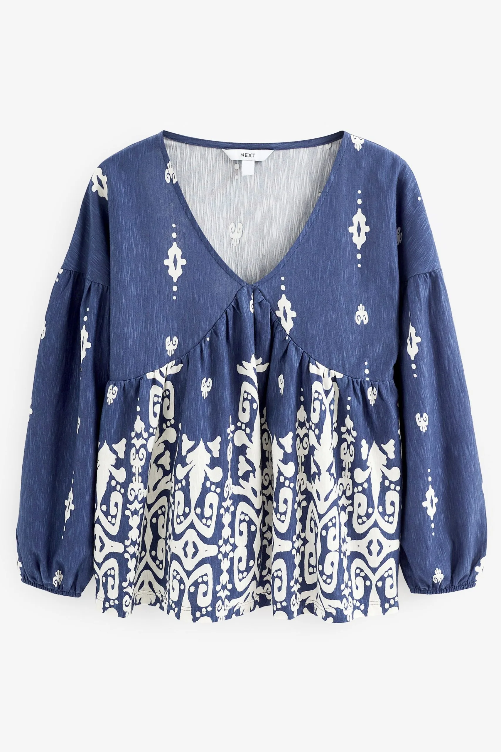 Bring a touch of boho chic to your wardrobe with our long sleeve v-neck blouse. Designed with dropped shoulders, balloon sleeves and in a floaty relaxed fit for a flattering and feminine finish. This versatile style can be dressed up or down.