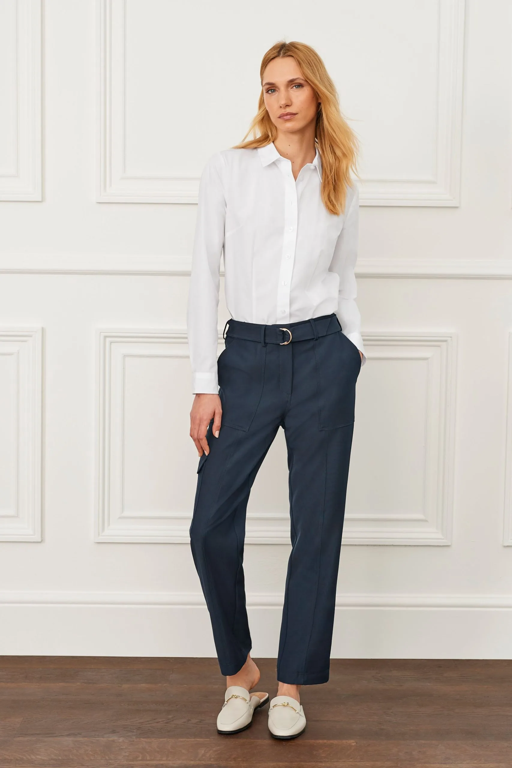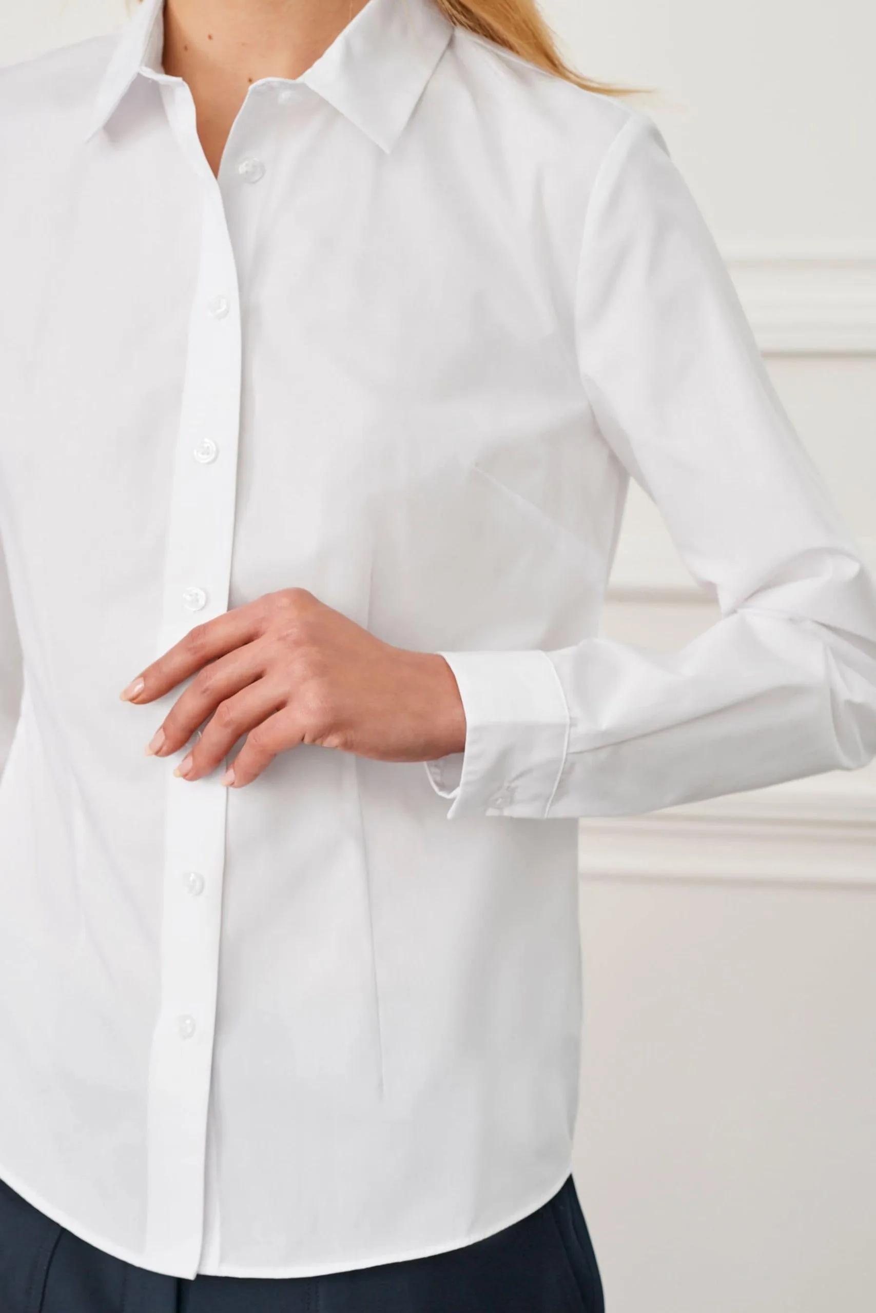 Workwear essentials done right. Our shirt is made from a soft and lightweight fabric, with a blend of cotton for a premium finish. It’s cut to a flattering hip length with a fitted cut to accentuate the bust and waist. With soft collar and cuffs. Create a office-ready outfit with pressed trousers and matching courts.
