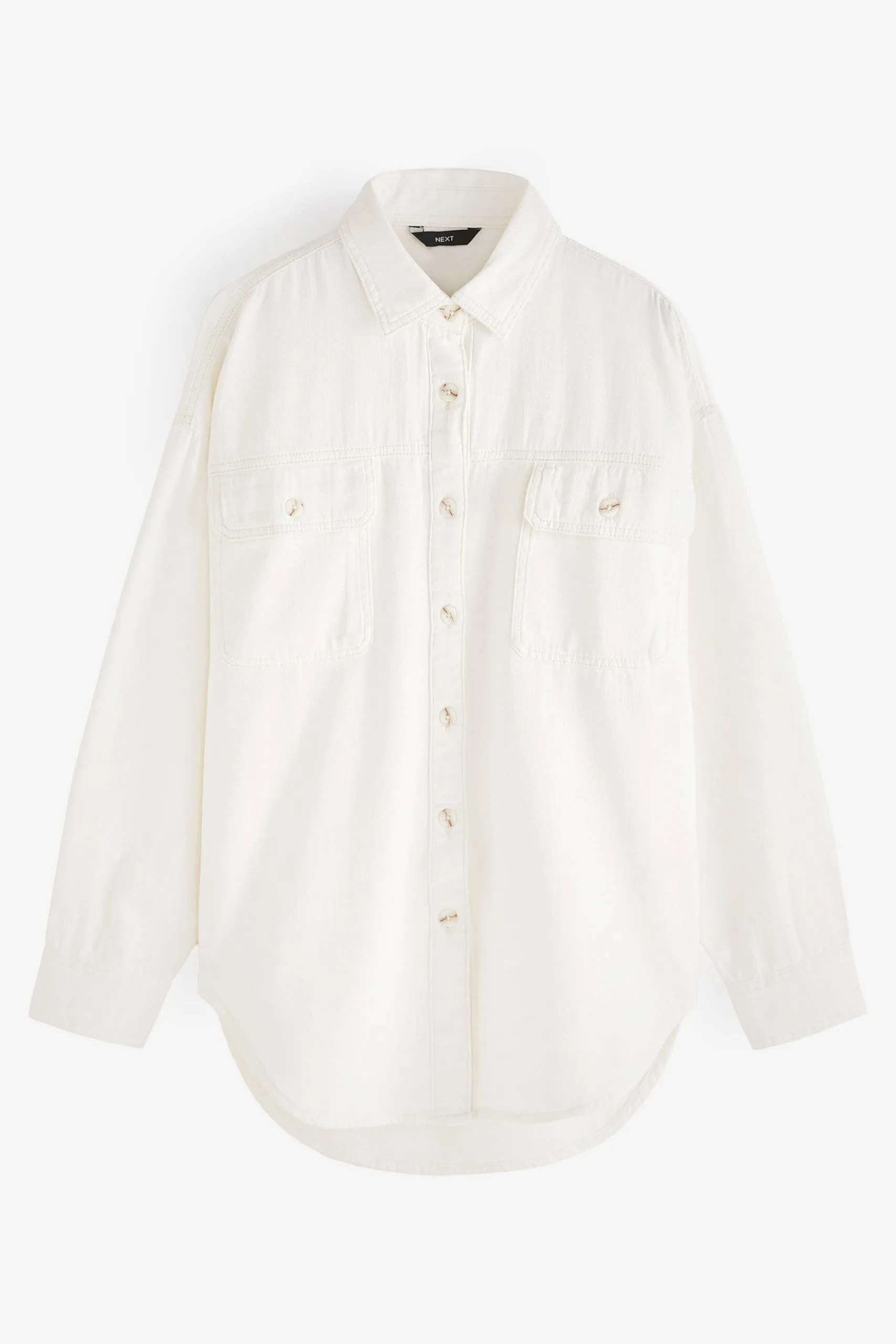 When comfort and style collide. Add this soft, authentic denim oversized shirt to your layering arsenal. The perfect piece for everyday wear, it features pockets to the front, contrast buttons and a curved hem.