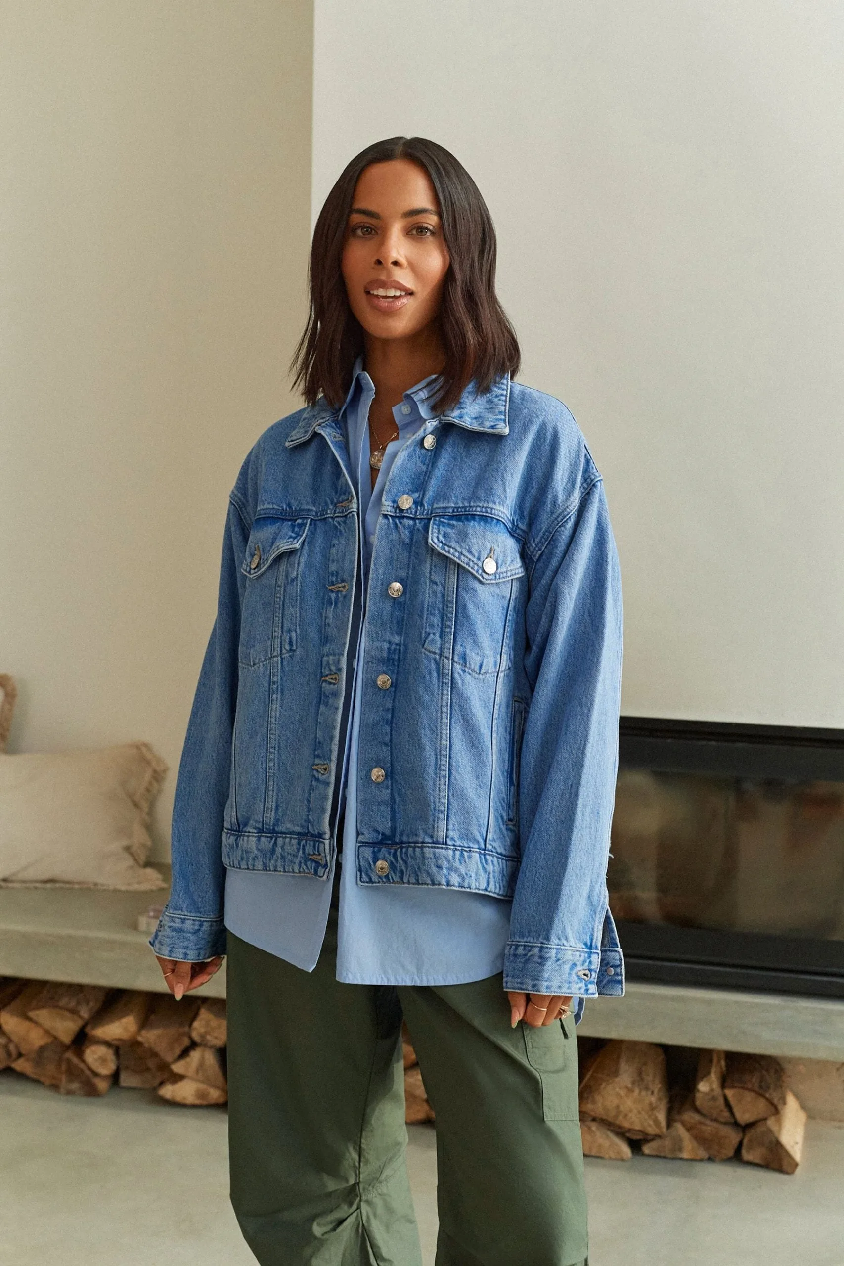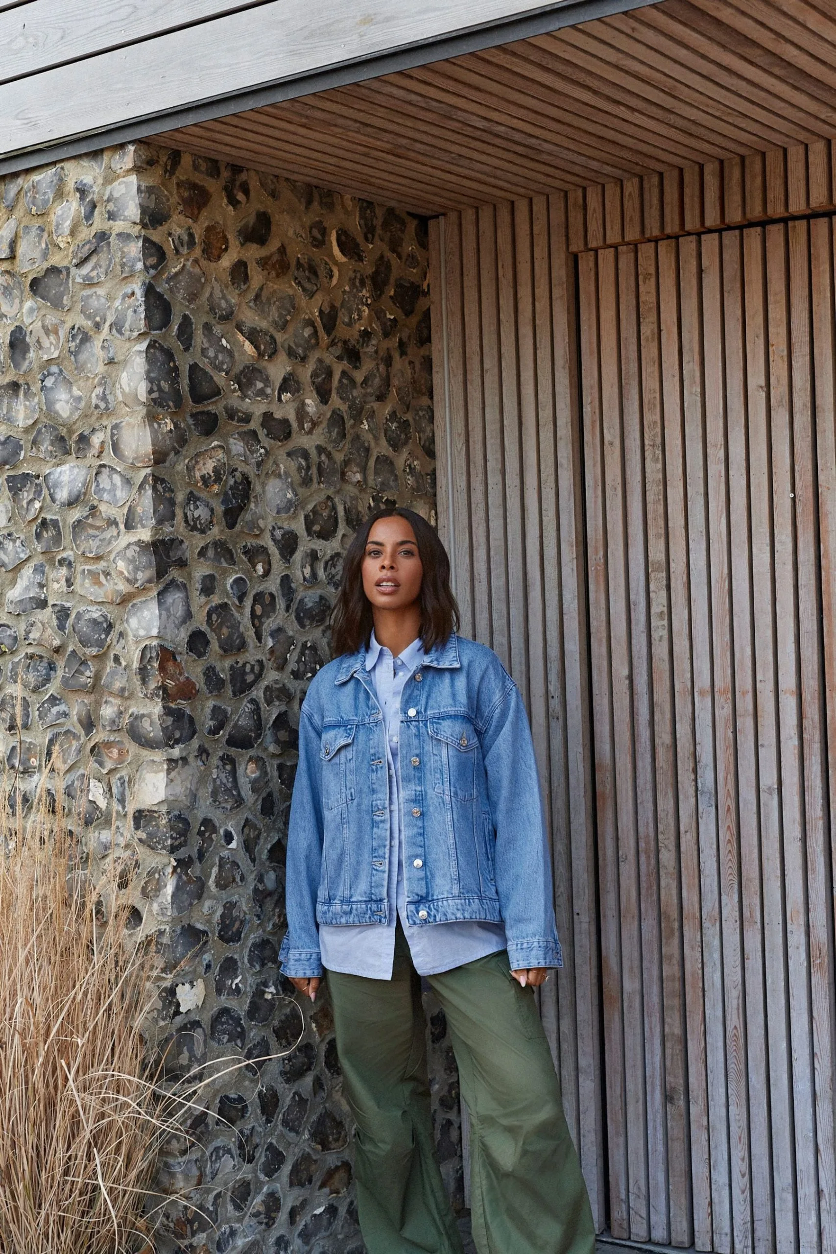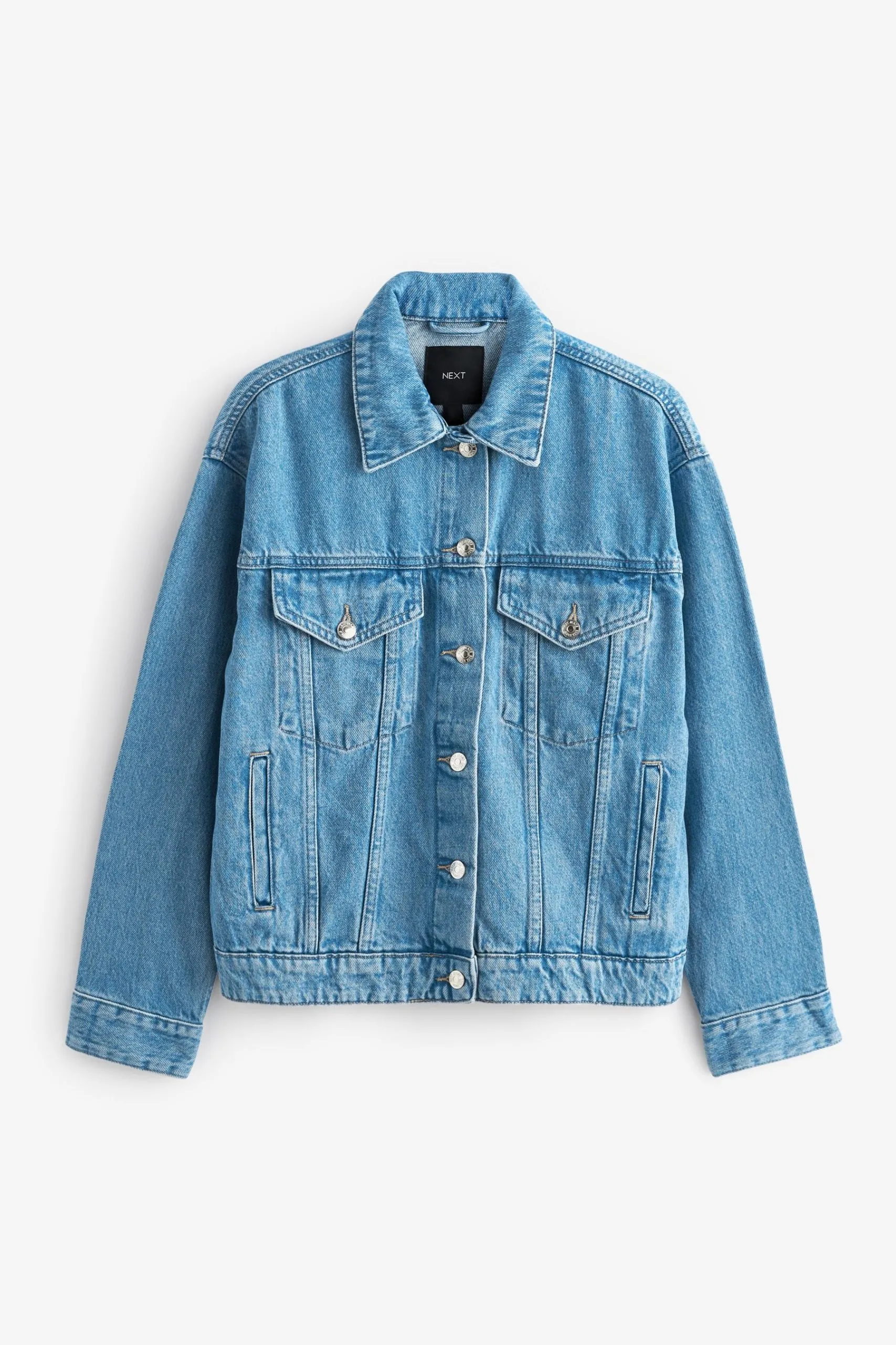 Ideal to create a trendy off-duty look, this boxy denim jacket is a classic wardrobe staple and due to it's oversized fit, it is perfect for layering over any outfit. It's designed with button fastening and patch pockets. Regular centre back neck to hem 25' / 63cm. Machine washable. 100% Cotton.