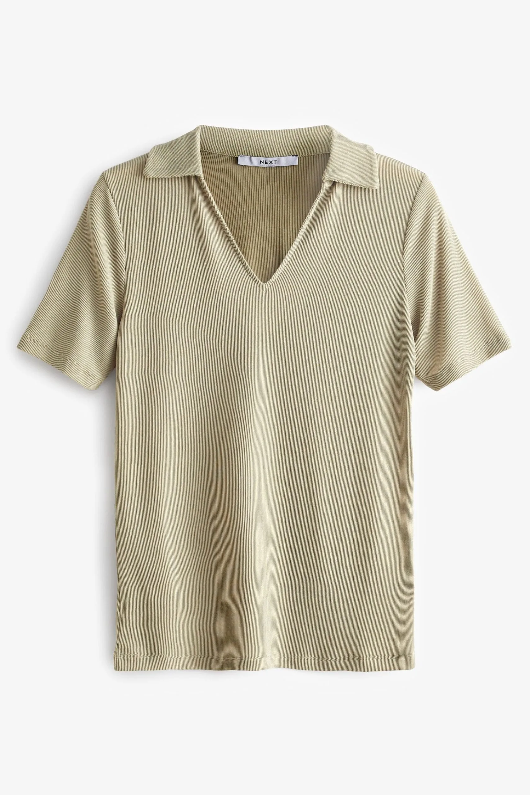 Next Ribbed Polo Neck Short Sleeve T-Shirt