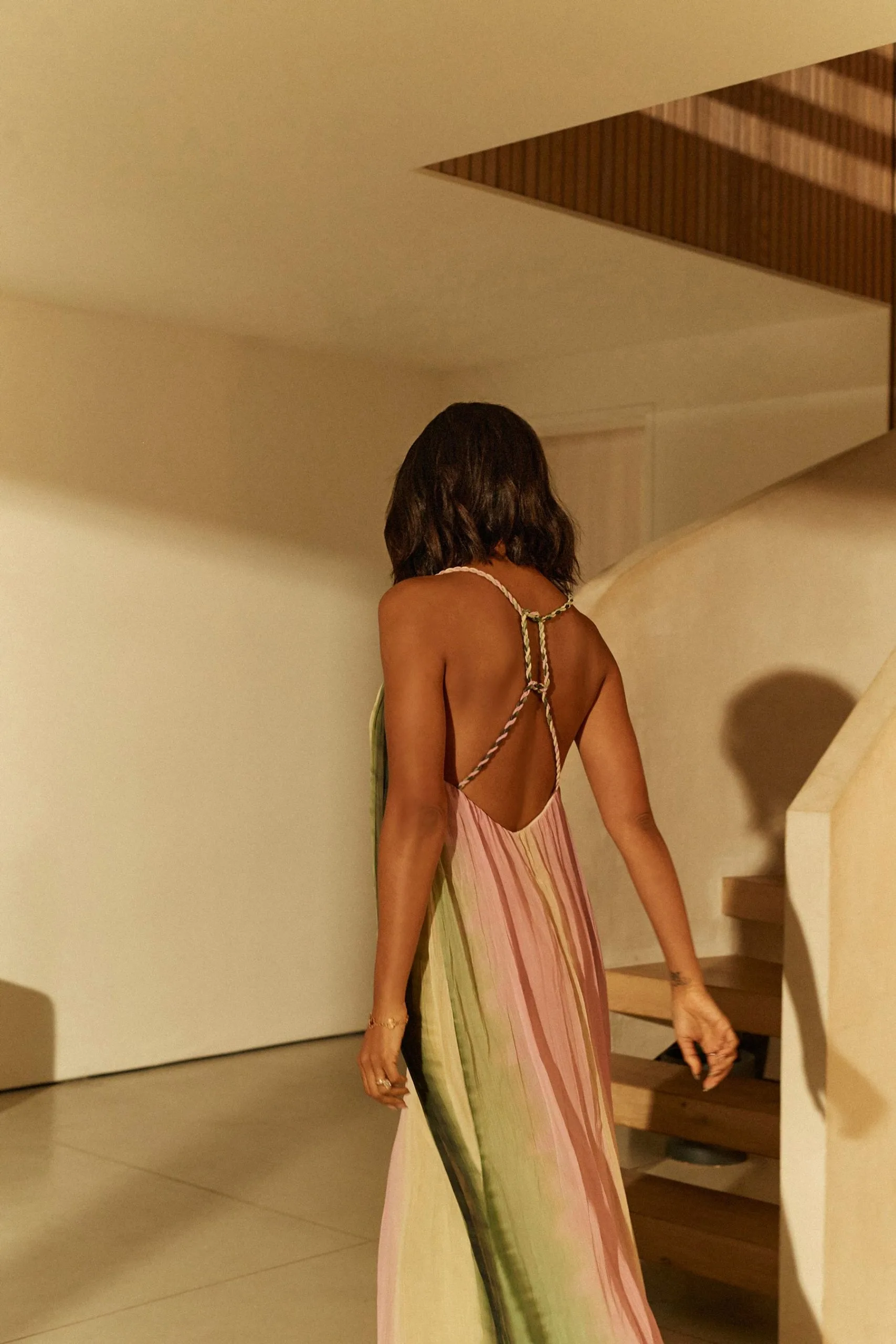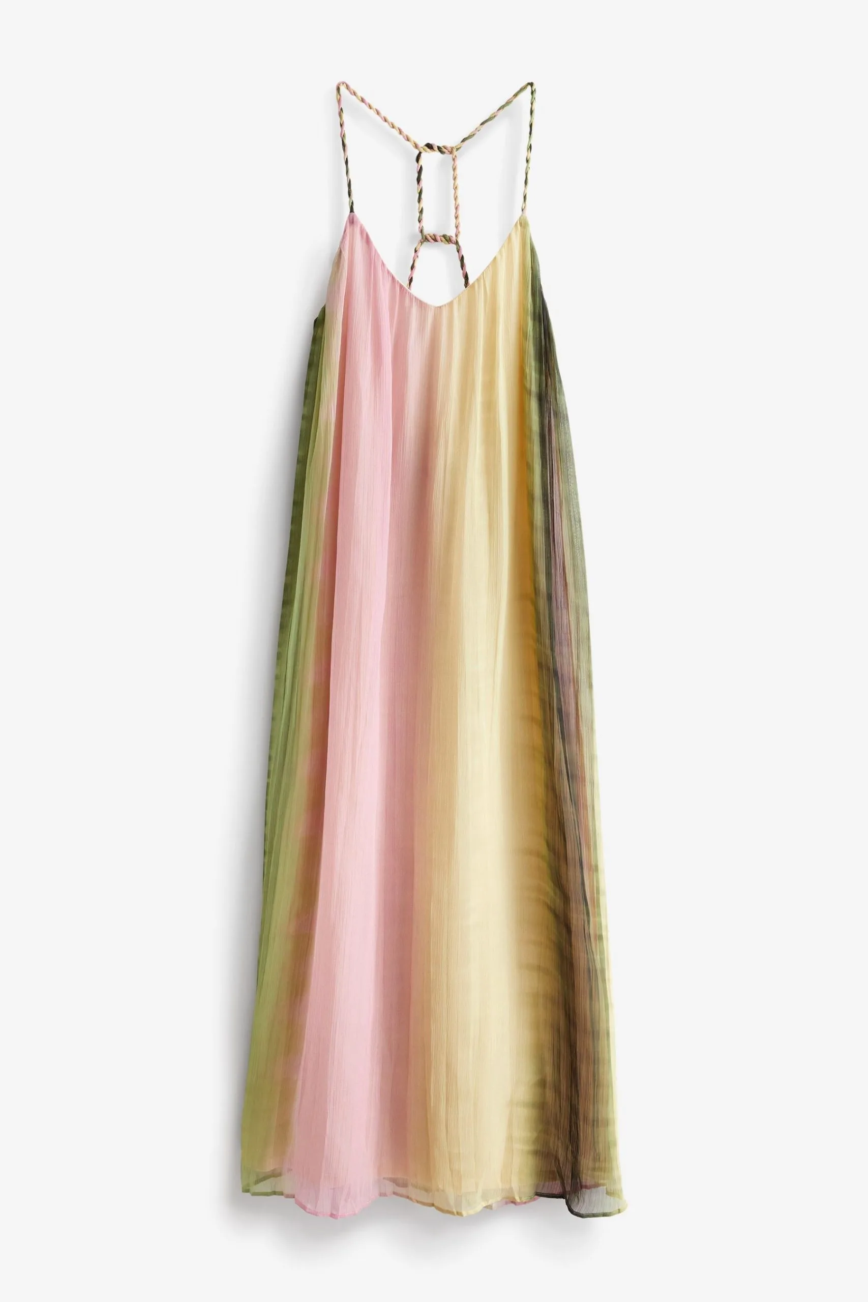 In a maxi length that finishes just above the ankle, this dress features plaited shoulder straps with knotted detail and a scoop back.
