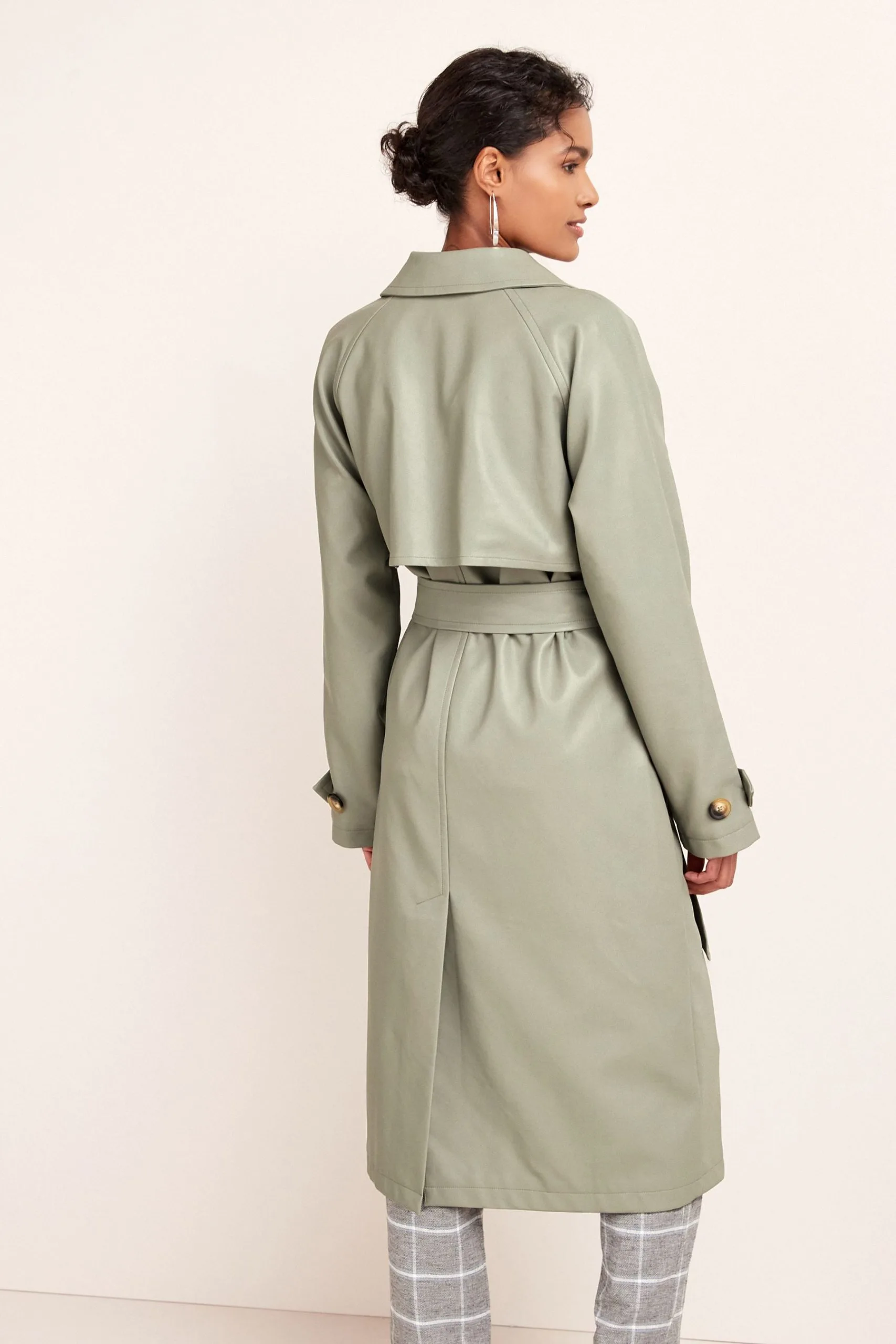 Be the first to review “Next Sage Green Faux Leather Belted Trench Coat” Cancel reply