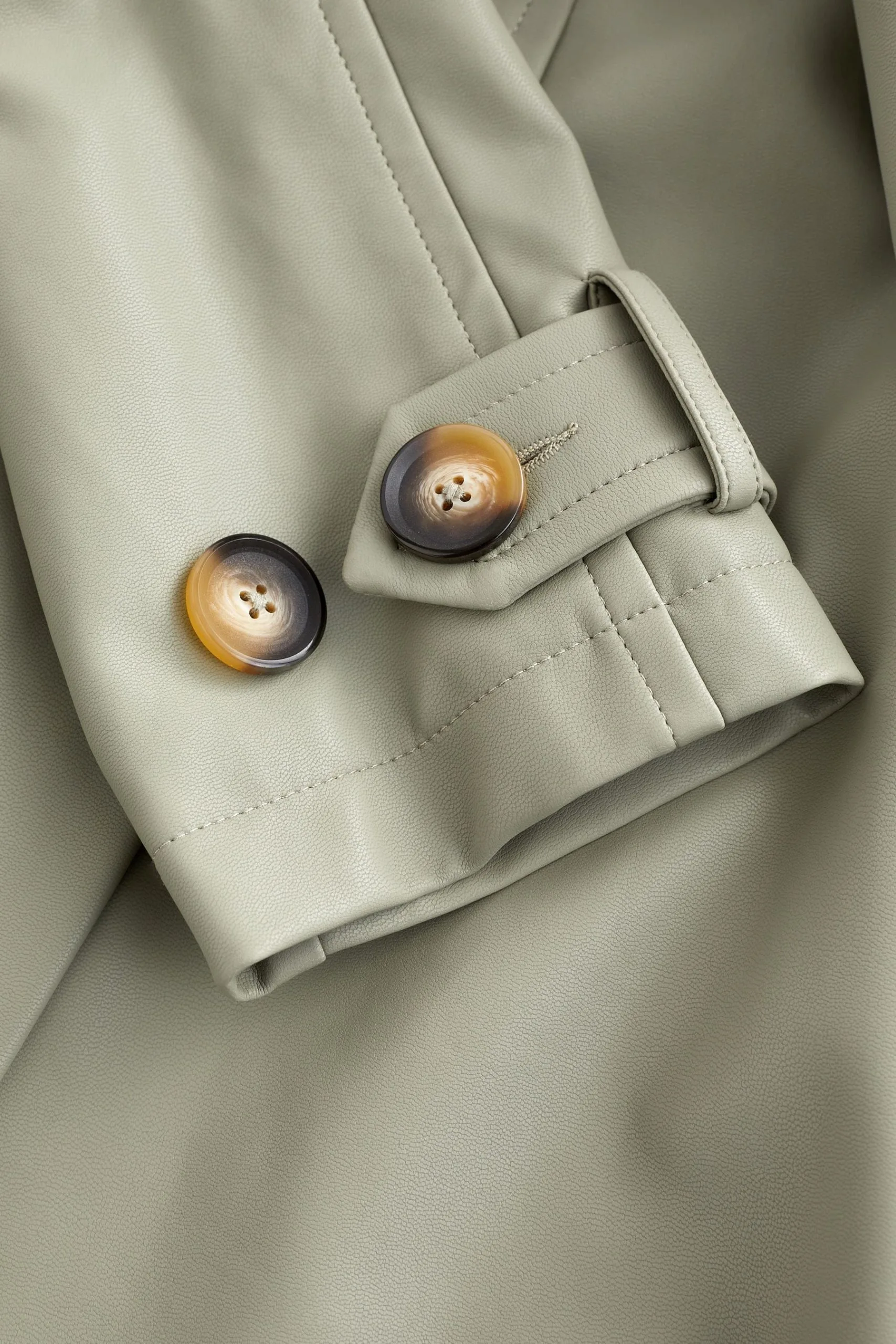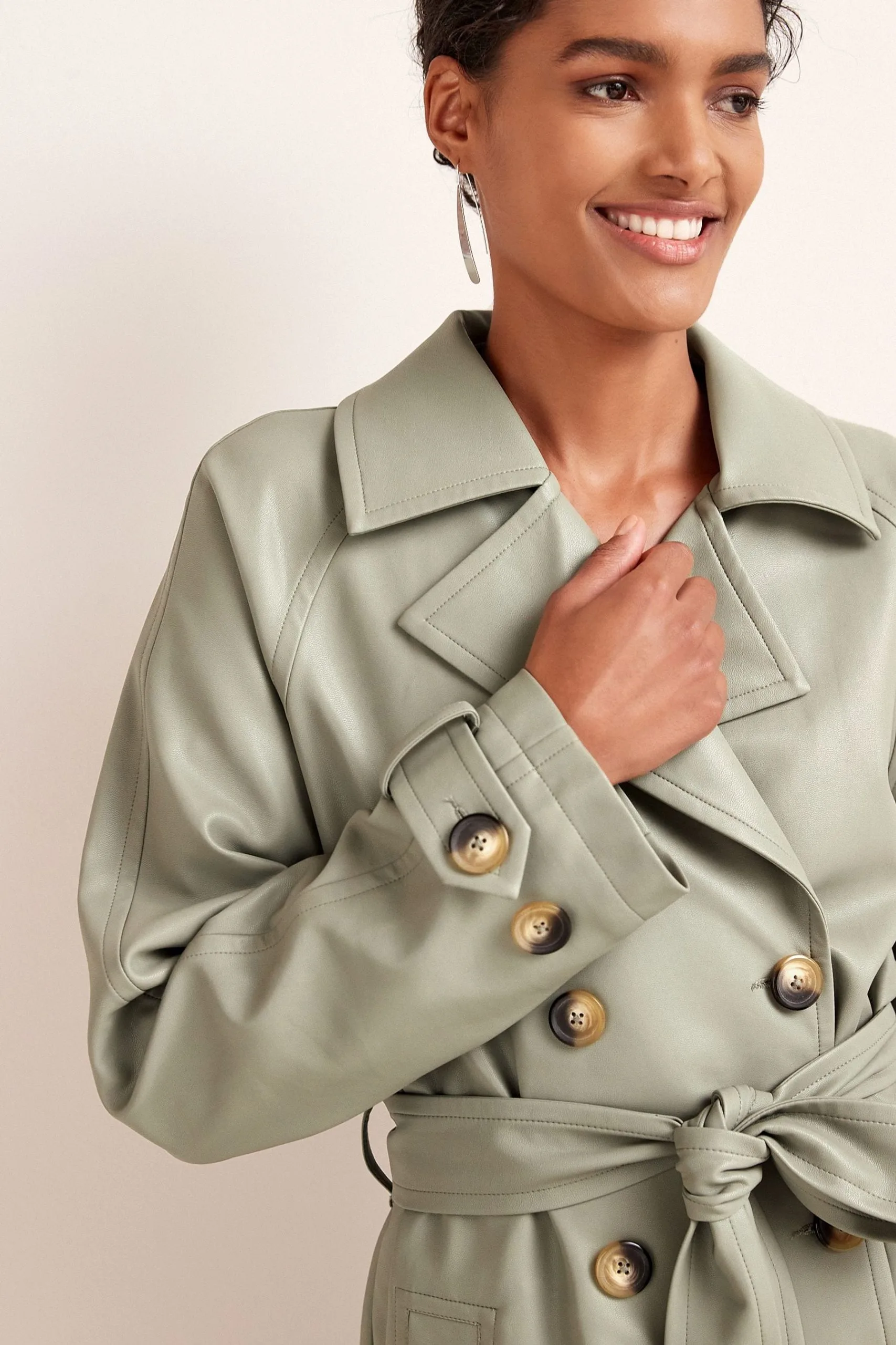 Next Sage Green Faux Leather Belted Trench Coat