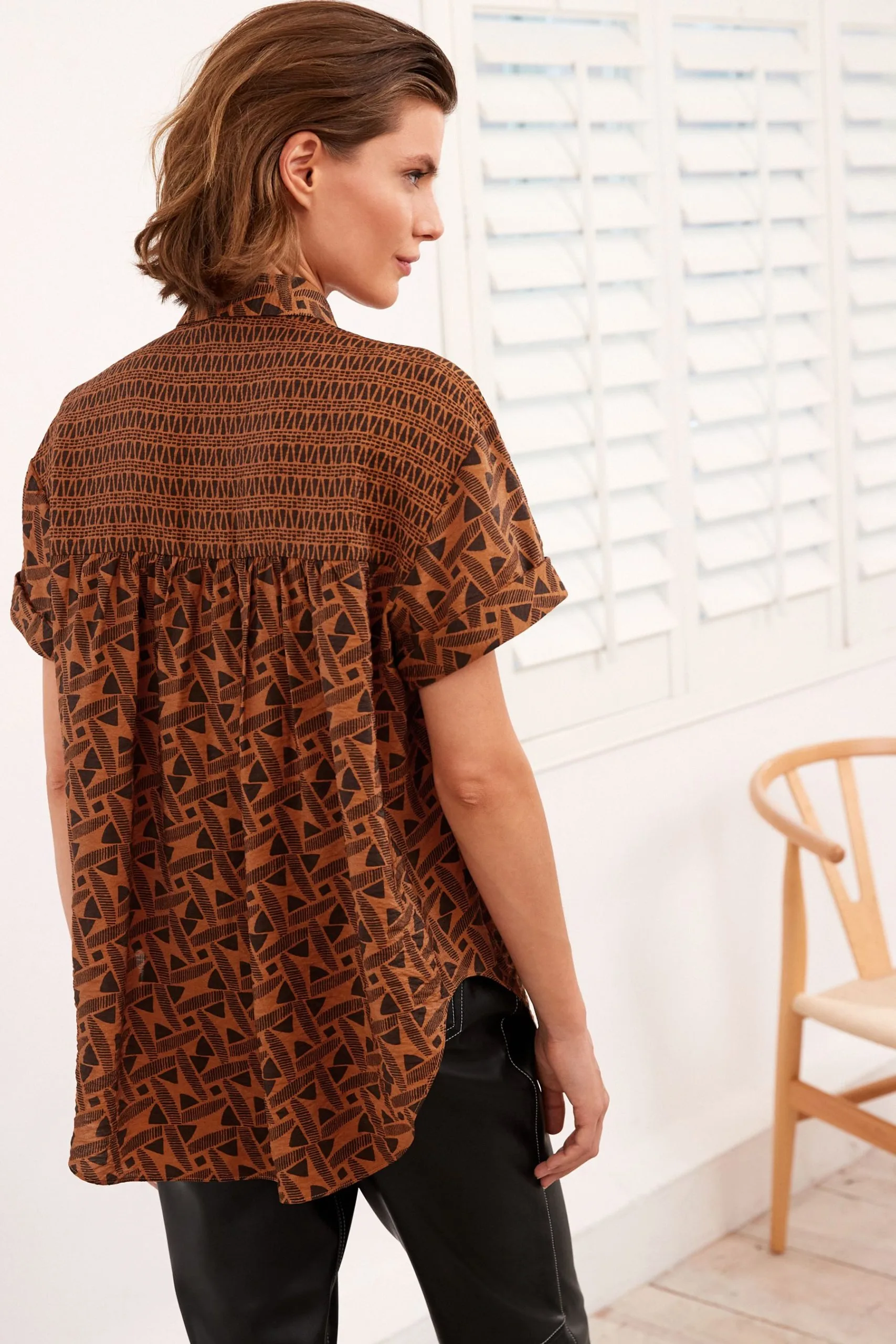 - Short sleeves with roll-up hem