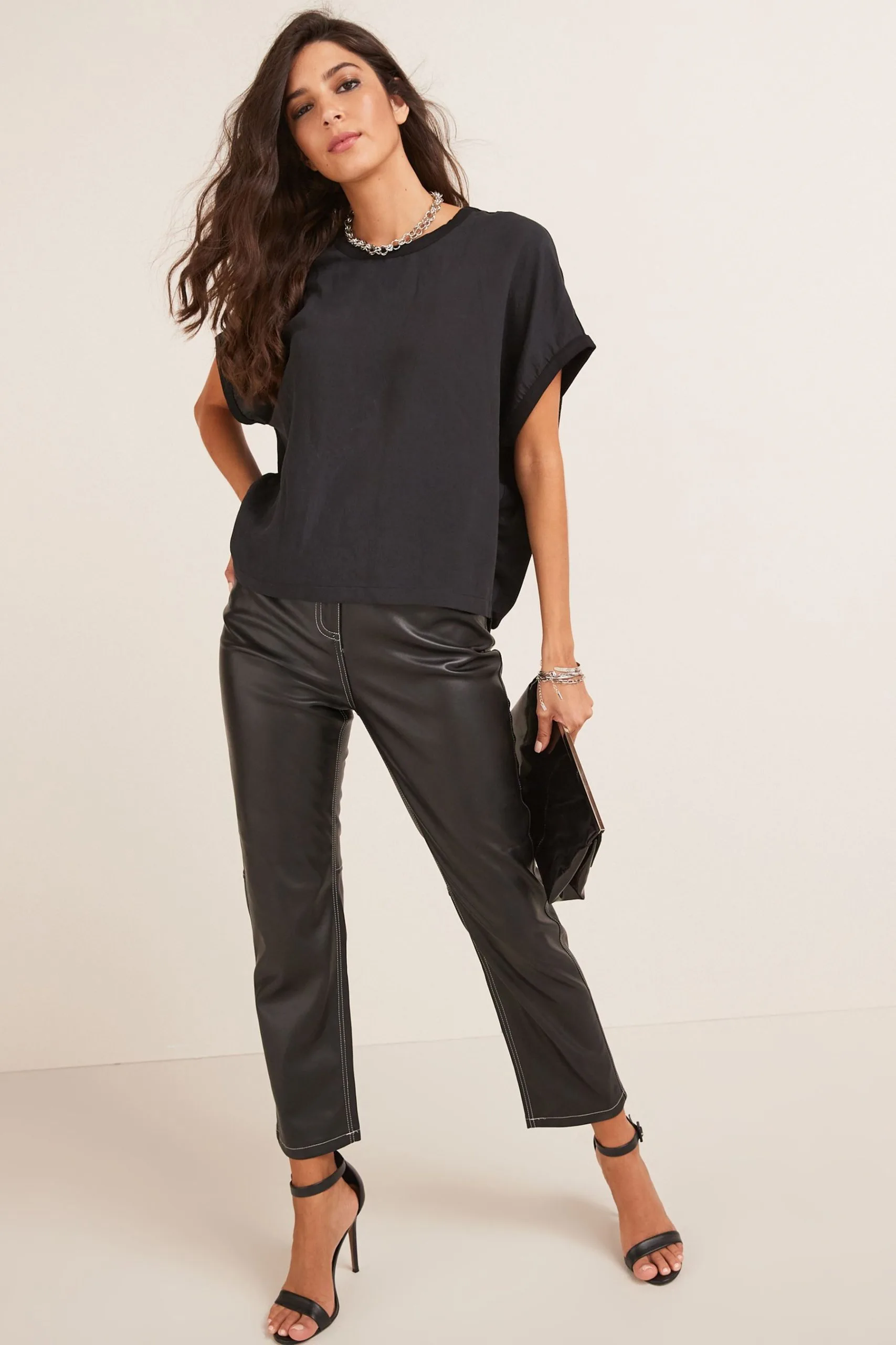 Next Short Sleeve Cupro Woven Mix Boxy T-Shirt