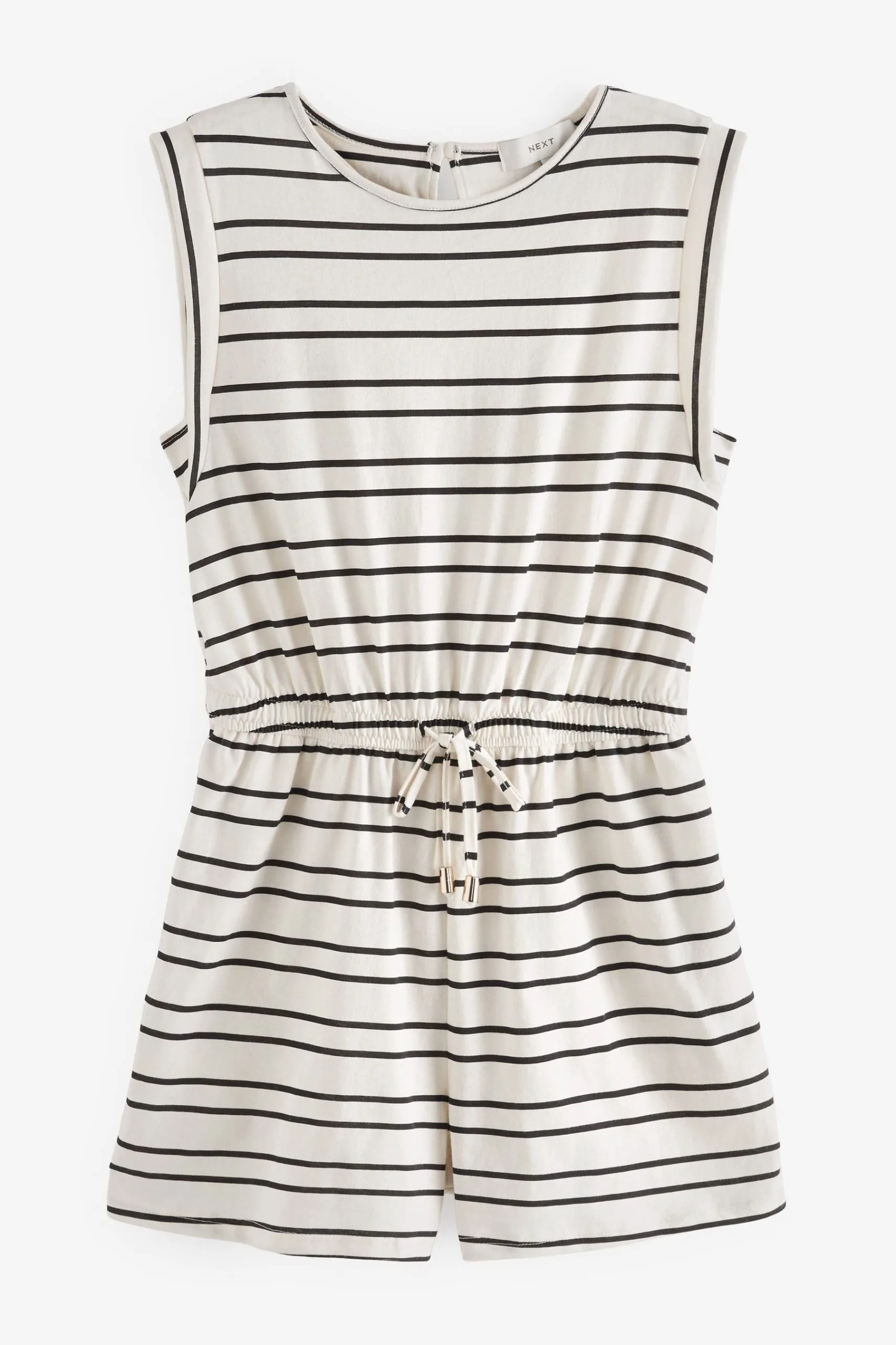 Get your wardrobe summer-ready with our fun and fashionable playsuit. Made from soft jersey cotton in a classic stripe, the sleeveless all-in-one features an adjustable drawstring waistband that you can do up or leave undone to suit your style and it has a charming keyhole detail on the back with a button fastening. The perfect post-beach outfit, this playsuit will take you from the beach to the bar with ease.