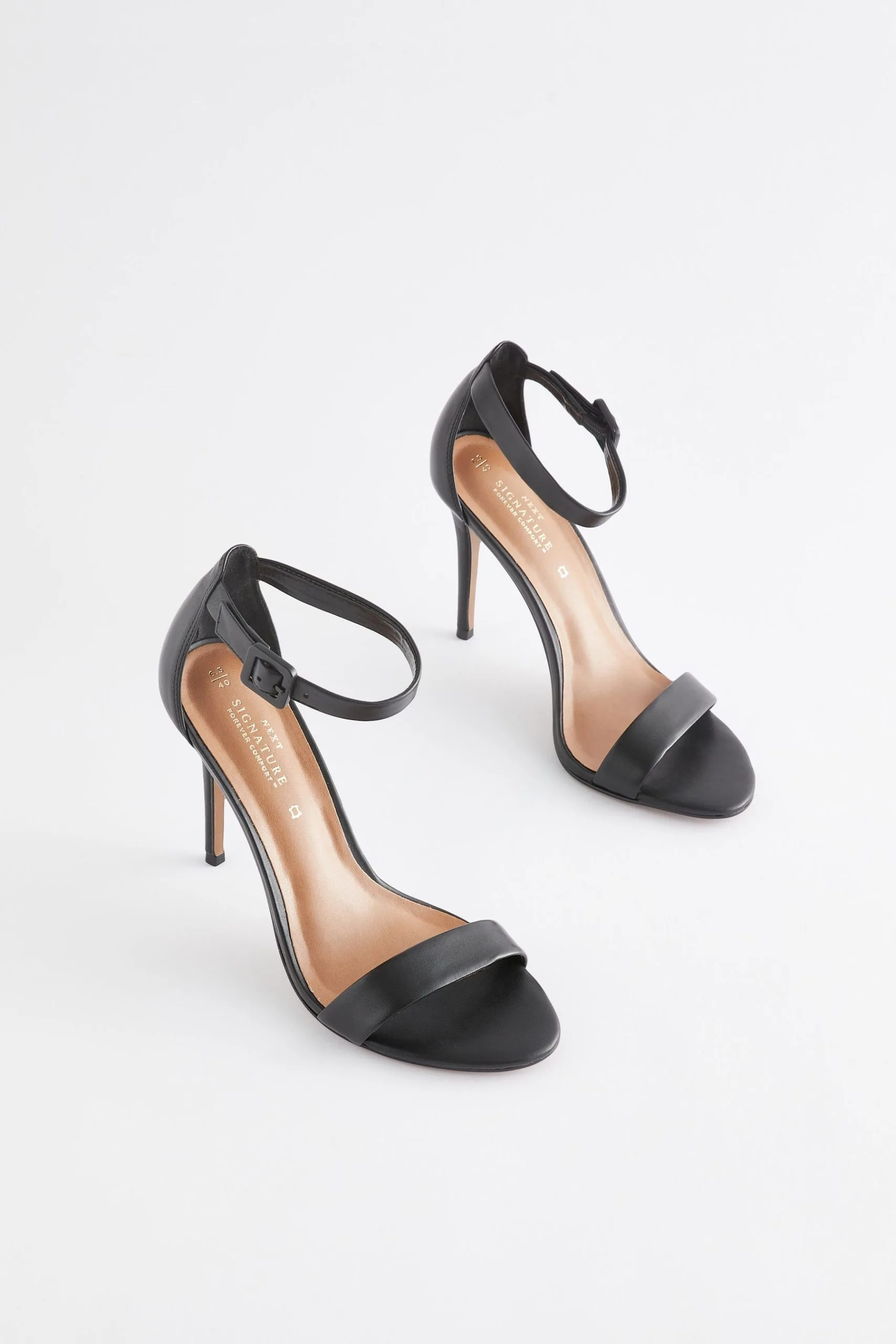 Complete your party outfit with these timeless sandals. Boasting a simple strap across the toe and an adjustable buckled strap around the ankle, this classic high heel is made from soft leather and will be a versatile addition to your wardrobe.
