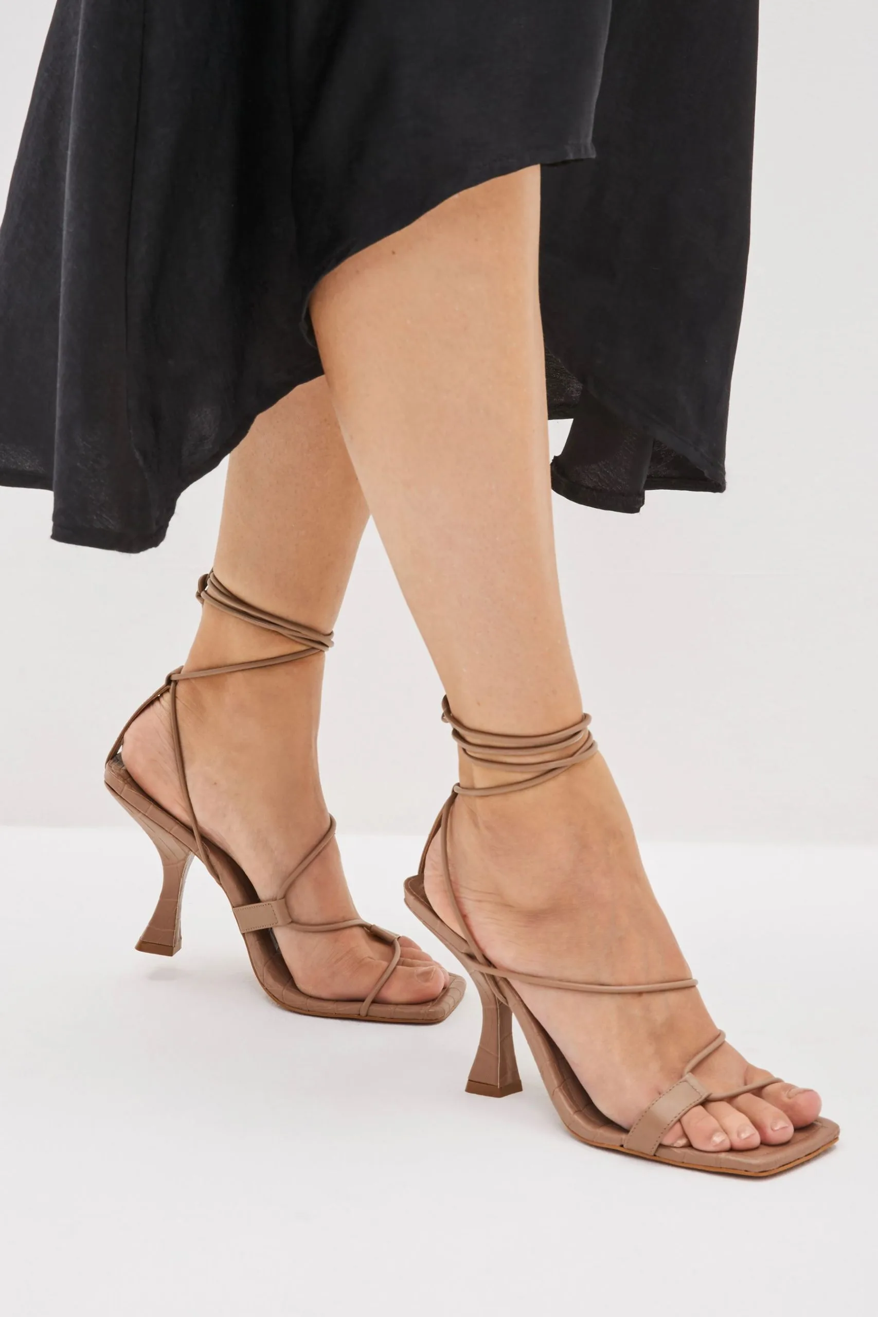 Next Signature Leather Strappy Square Toe Heels