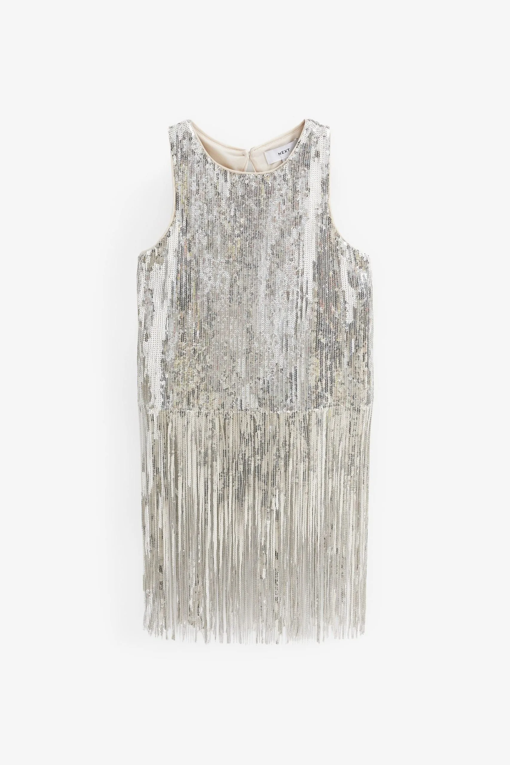 Next Silver Sparkle Sequin Fringed Sleeveless Top