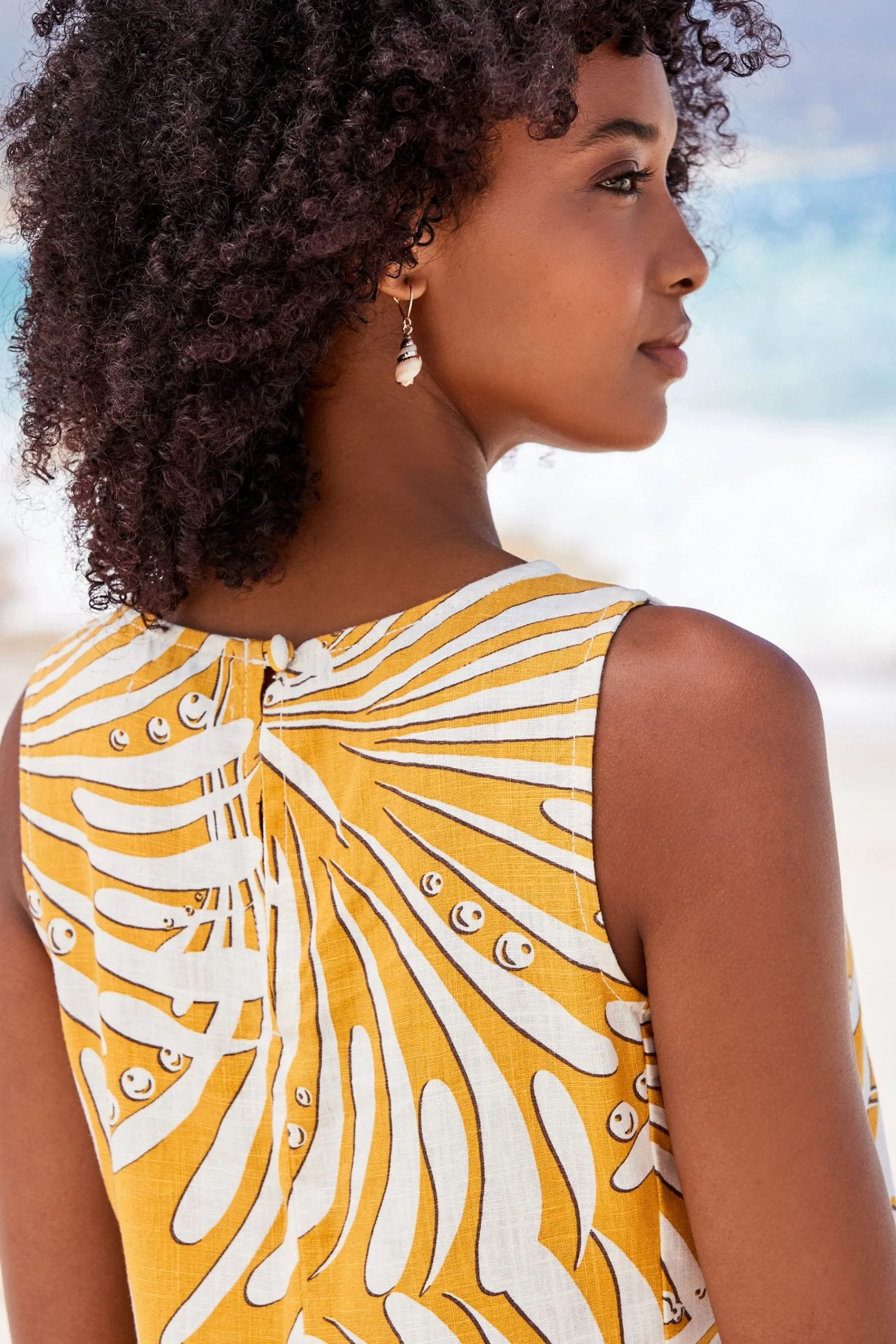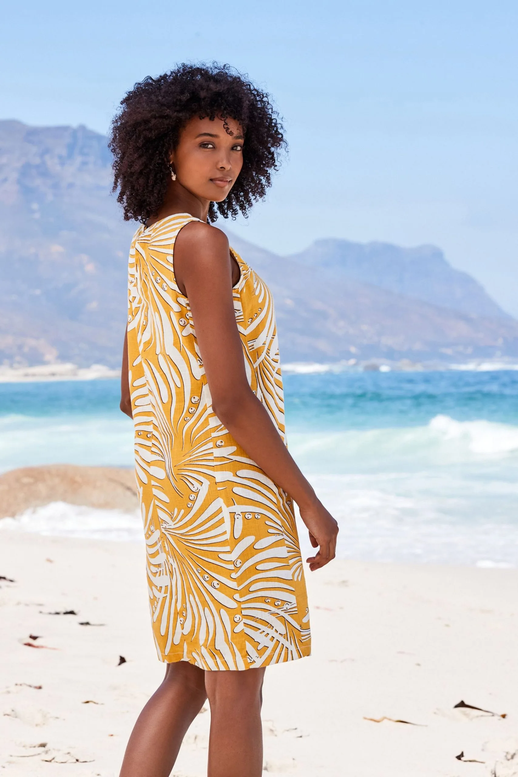 This laidback linen blend shift-style dress is destined for your warm weather wardrobe. Designed in a classic sleeveless shift silhouette with handy pockets (who doesn't love pockets?) and a button fastening on the reverse, this timeless navy dress will take you from the beach to the bar with ease.