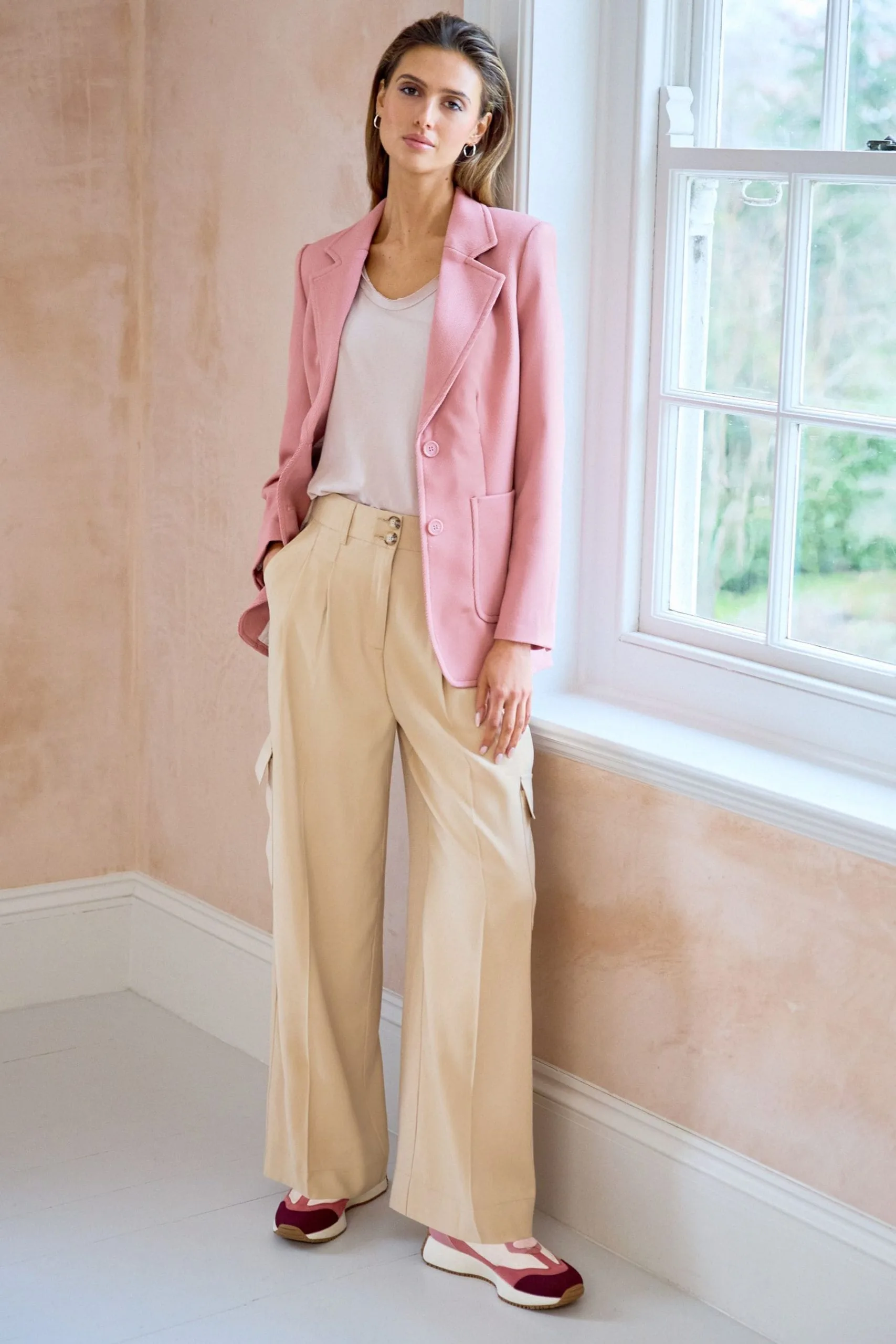 This stylish tailored single-breasted blazer has been designed in a luxurious twill fabric. Featuring two large patch pockets to add functionality. This blazer has also been designed with a notched lapel and two buttons down the centre front for closure that matches the main fabric. Style with trousers and a heel to complete the look. Designed in a luxurious twill fabric, two large patch pockets to add functionality, two buttons down the centre front for closure.