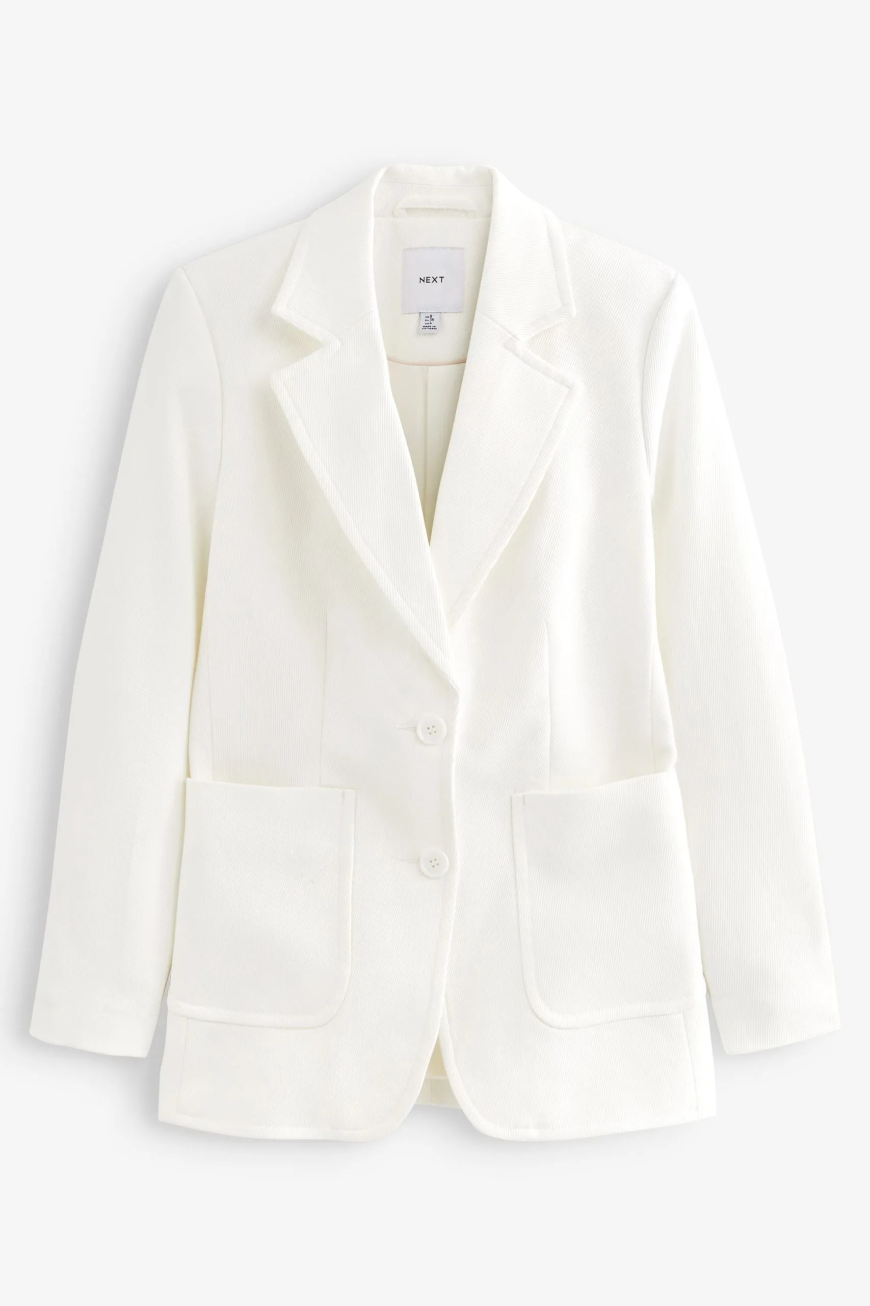 This stylish tailored single-breasted blazer has been designed in a luxurious twill fabric. Featuring two large patch pockets to add functionality. This blazer has also been designed with a notched lapel and two buttons down the centre front for closure that matches the main fabric. Style with trousers and a heel to complete the look. Designed in a luxurious twill fabric, two large patch pockets to add functionality, two buttons down the centre front for closure.