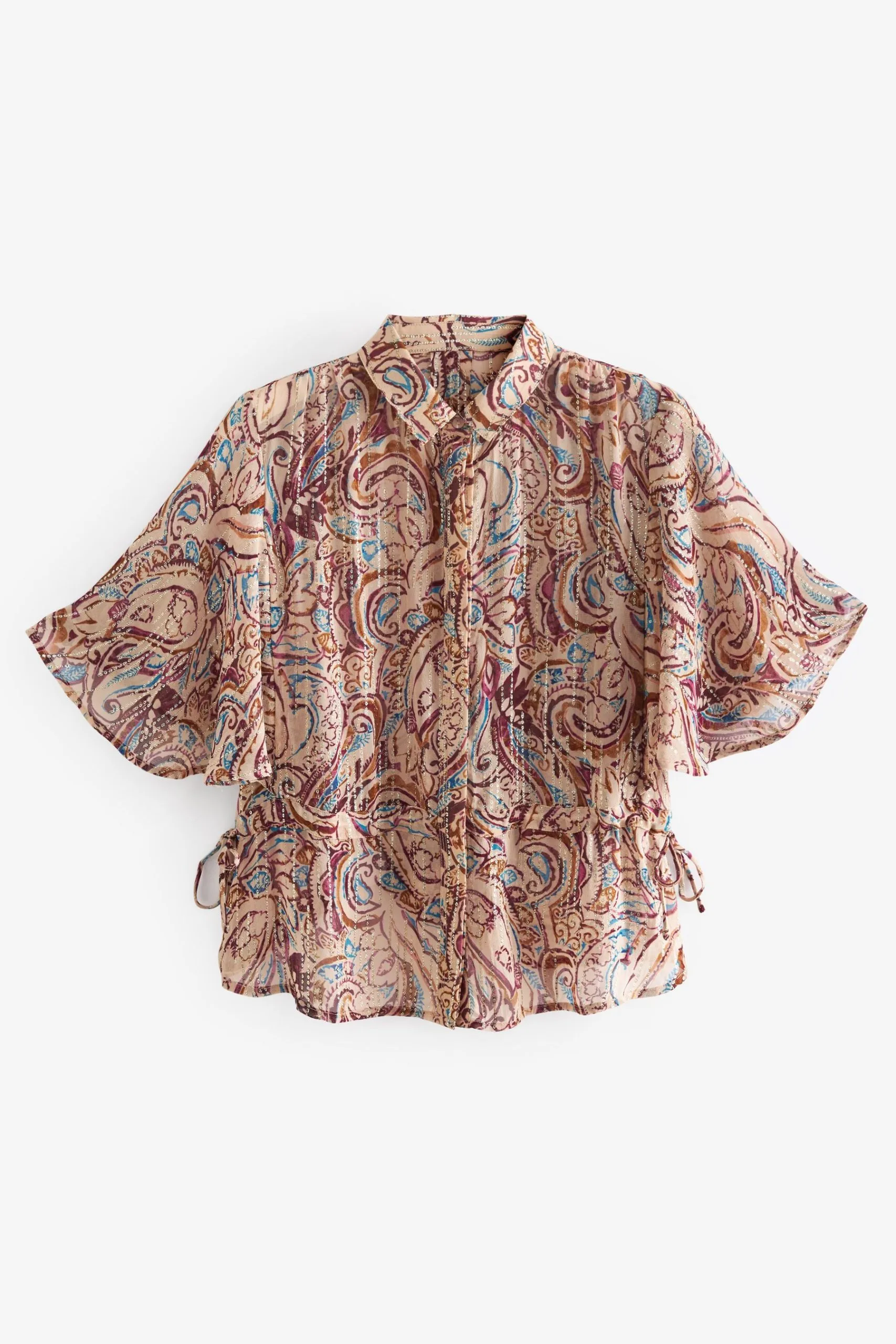 Next Tie Waist Flutter Short Sleeve Sparkle Blouse
