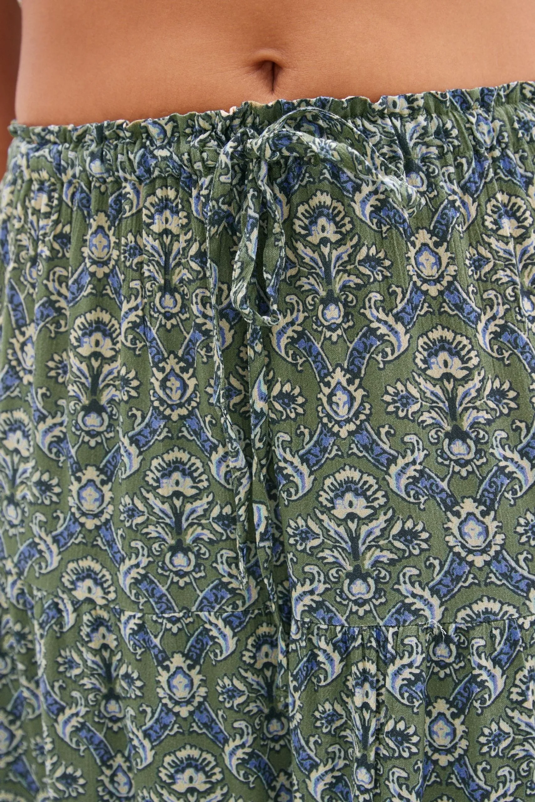 Instantly add a feminine charm to your summer fits with this stylish khaki green tiered midi skirt. Made from ultra-cooling fabric with tie waist detail and a tiered skirt.