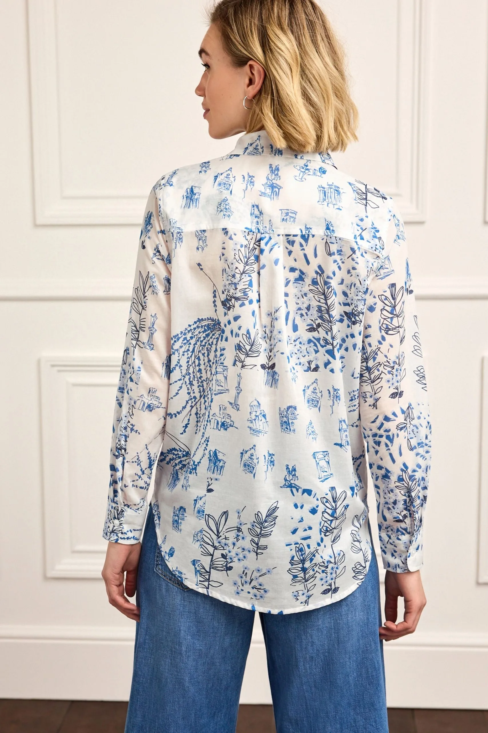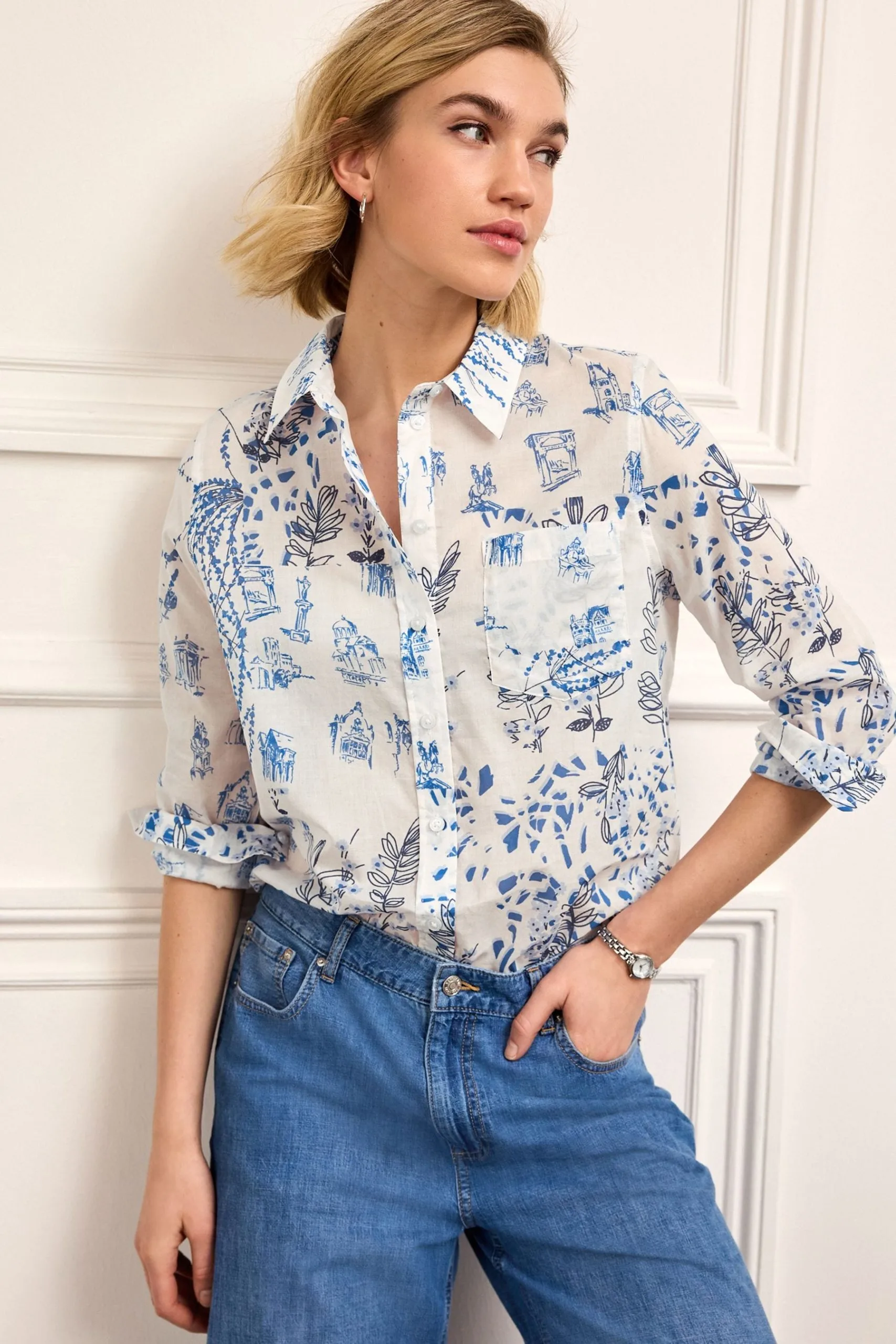 Next White/Blue Printed 100% Cotton Long Sleeve Shirt