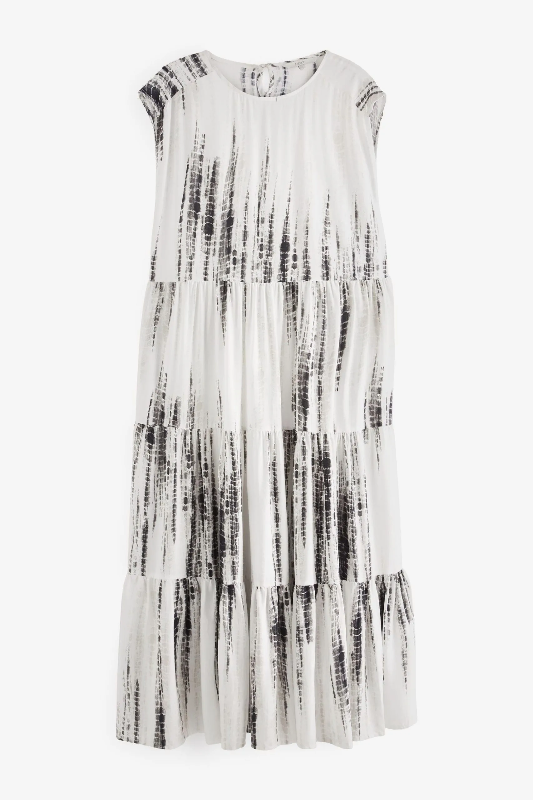 Next White Tie Dye White Tie Dye Oversized Tiered Kaftan Summer Dress