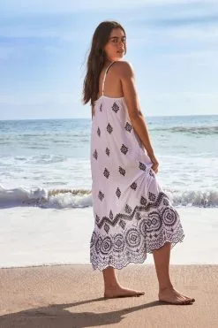Next White White Contrast Embroidered Maxi Slip Summer Dress