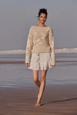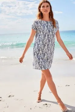 Next Cream Leaf Crinkle Bubble Hem 100% Cotton Long Sleeve Top