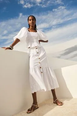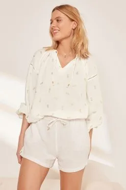 Next Cream Leaf Crinkle Bubble Hem 100% Cotton Long Sleeve Top